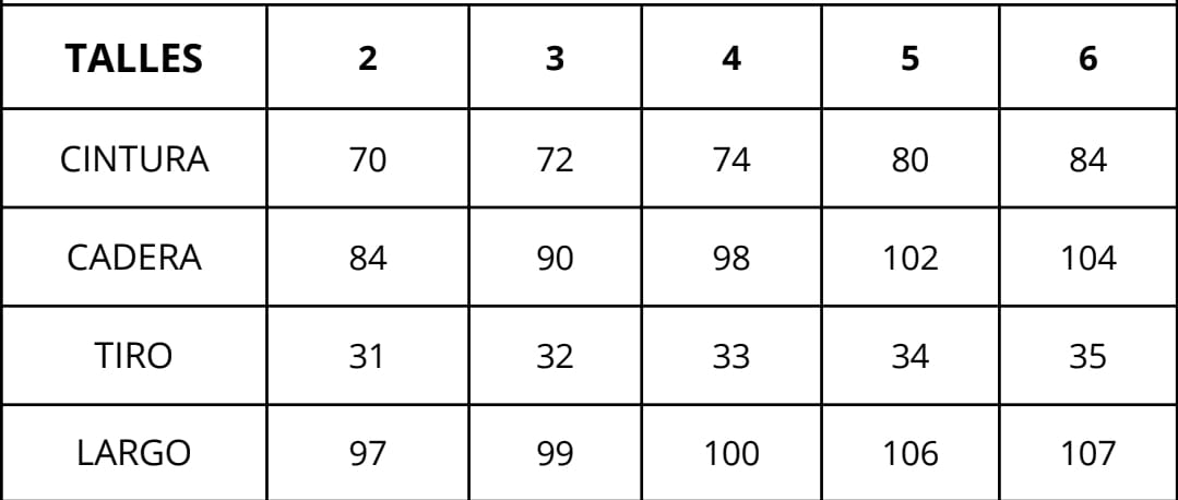 | Talles | 2, 3, 4, 5, 6 |