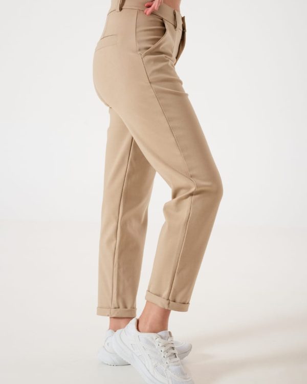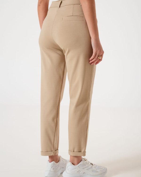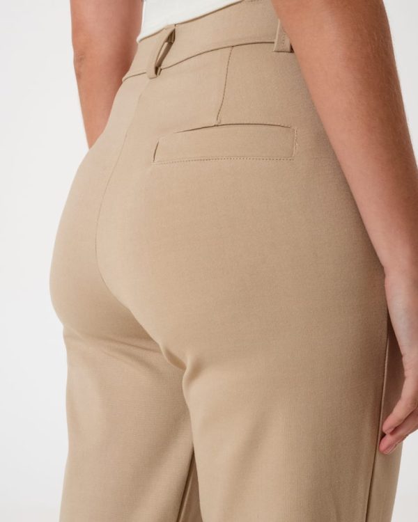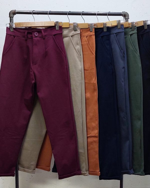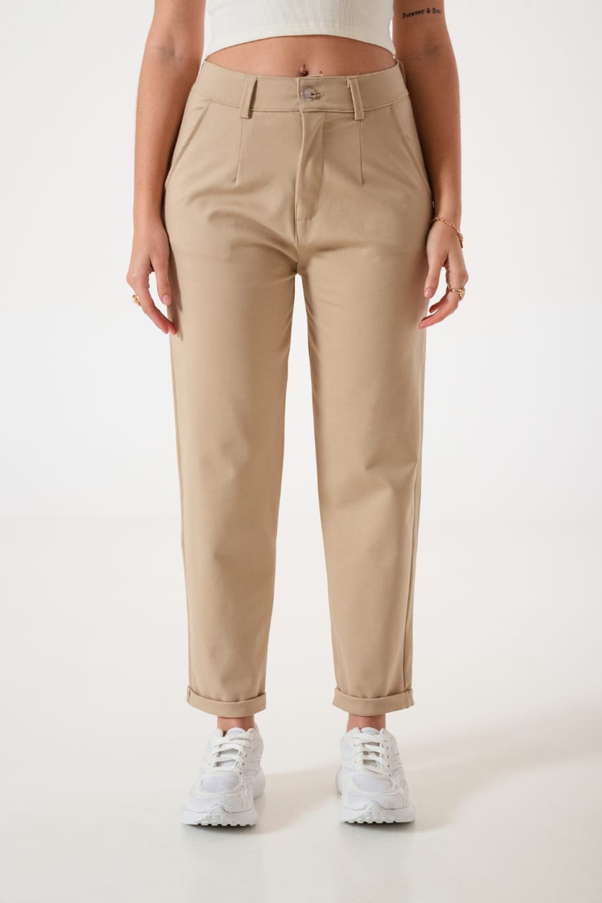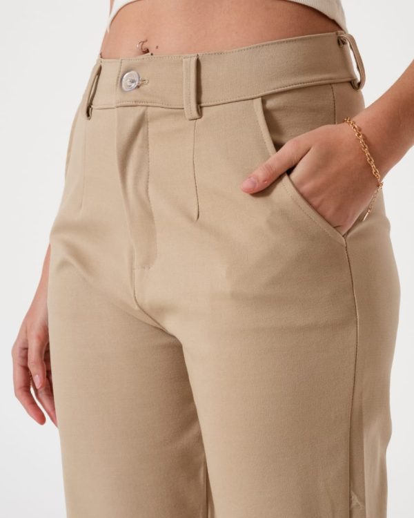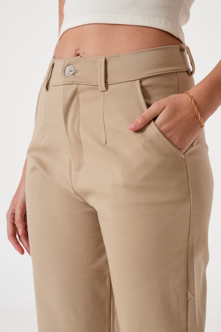 Pantalon estilo mom confeccionado en tela de punto roma con detalle de bolsillos, pasacinto, cierre y boton.