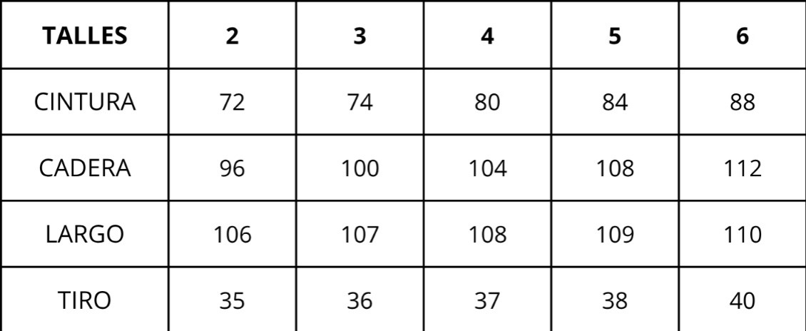 | Talles | 2, 3, 4, 5, 6 |