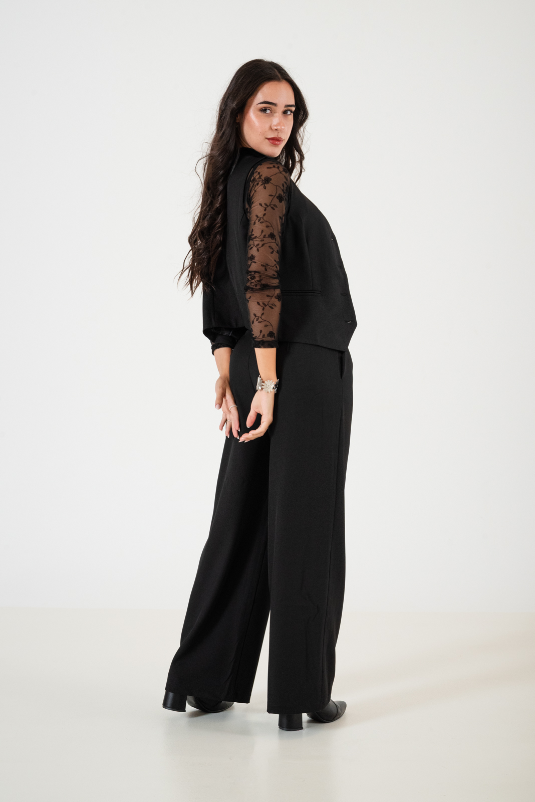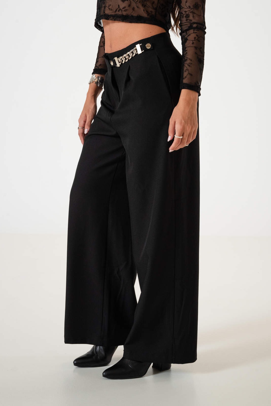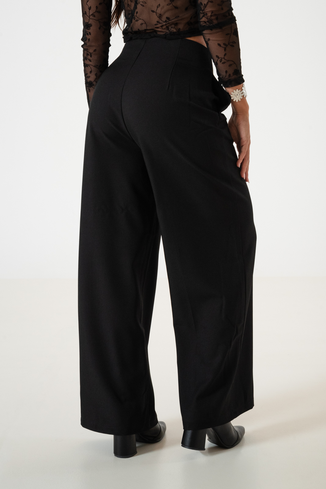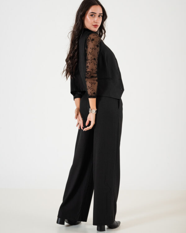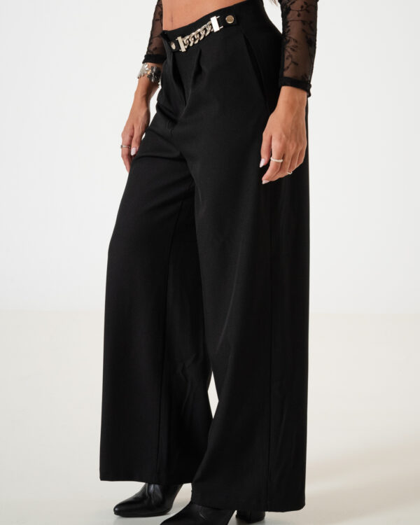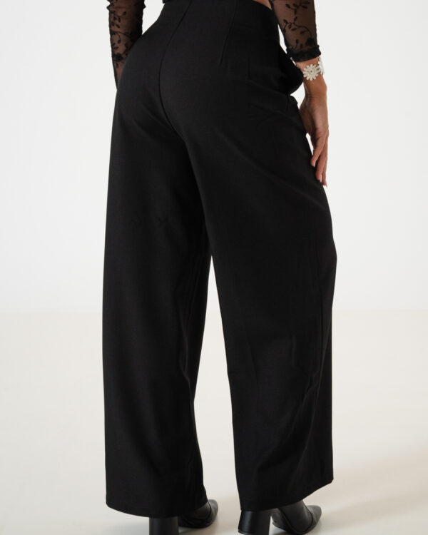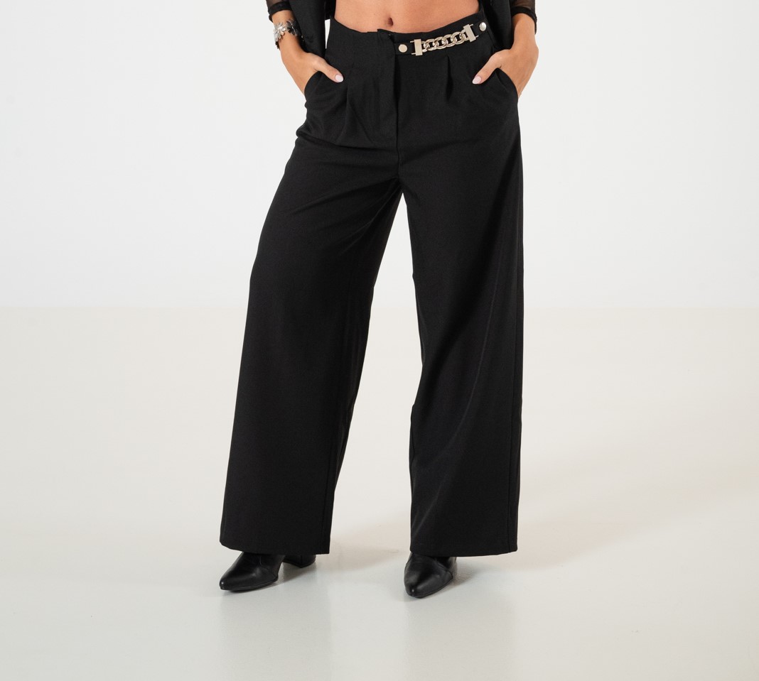 Pantalon estilo palazo confeccionado en tela de sastreria con detalle de cadera en su lateral, bolsillos