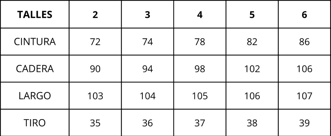 | Talles | 2, 3, 4, 5, 6 |