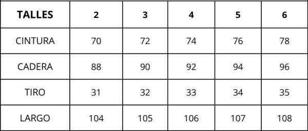 | Talles | 2, 3, 4, 5, 6 |