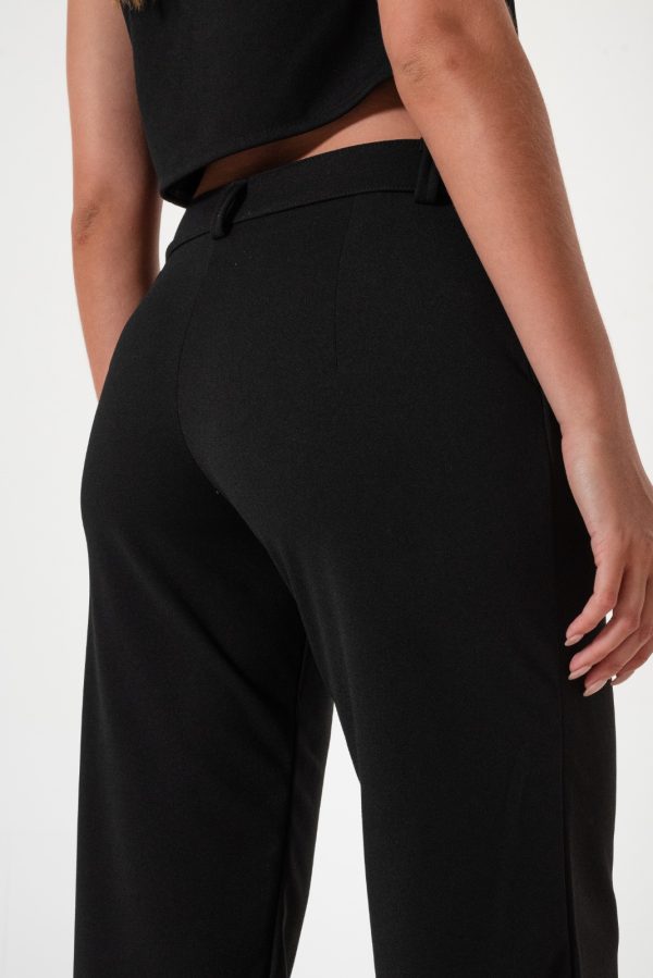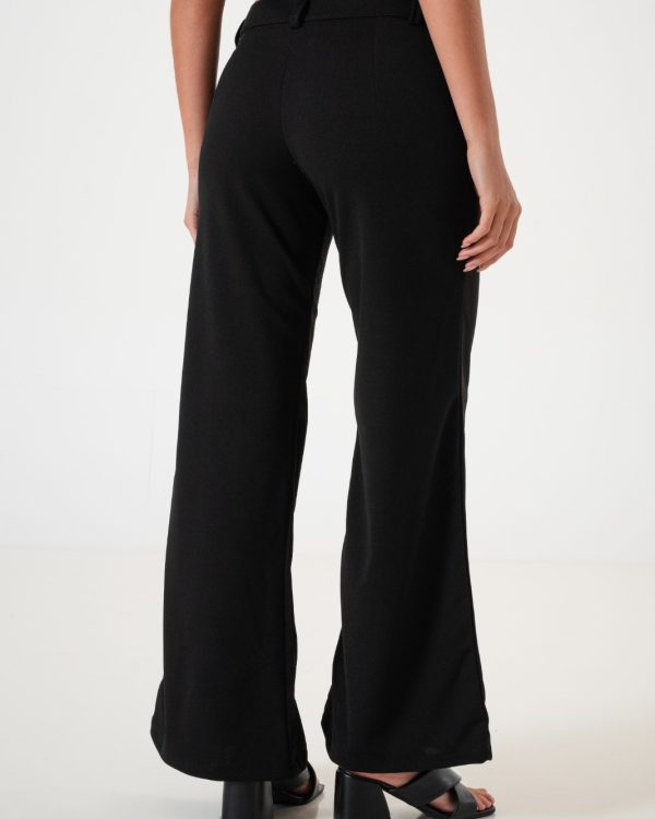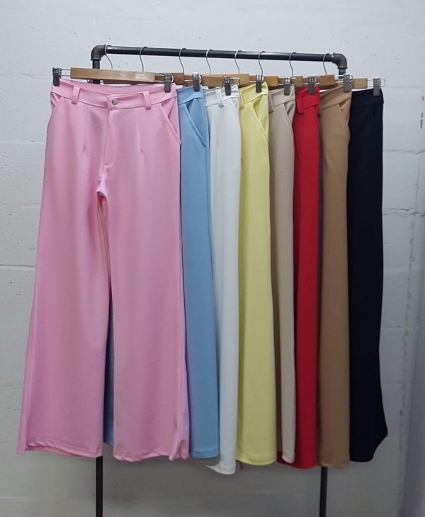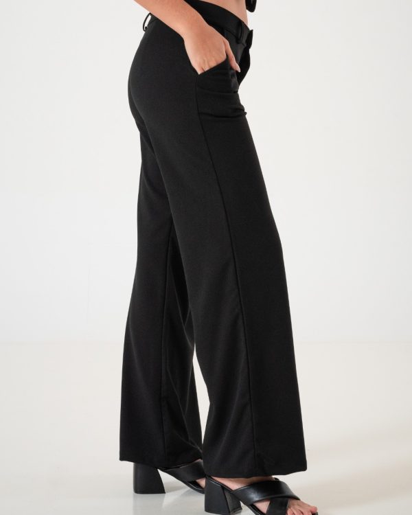 Pantalon estilo palazo confeccionado en tela de crep con detalle de bolsillos, pasacinto, cierre y boton.
