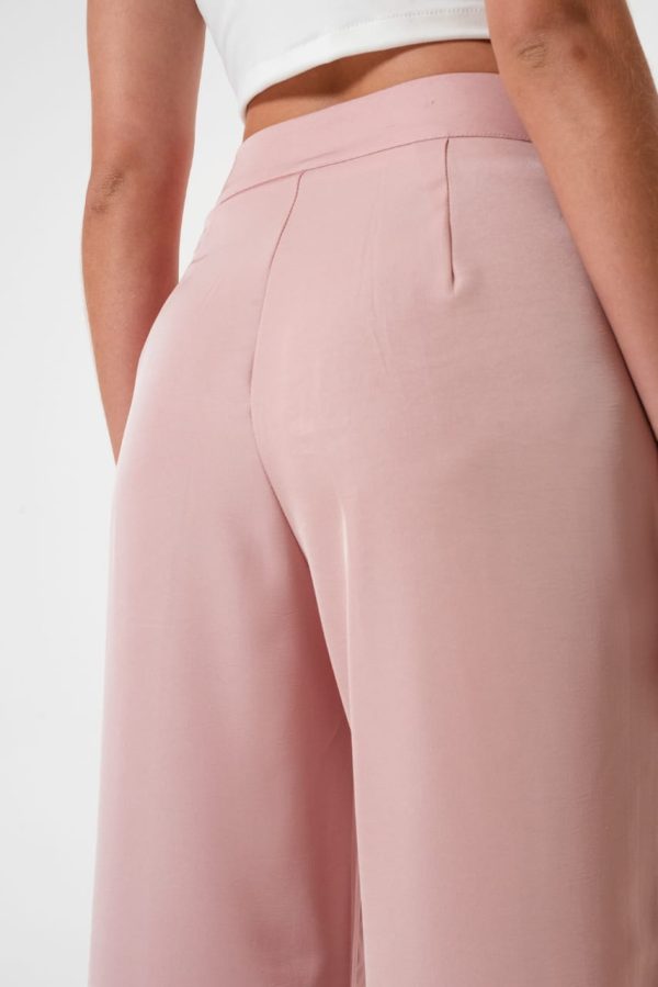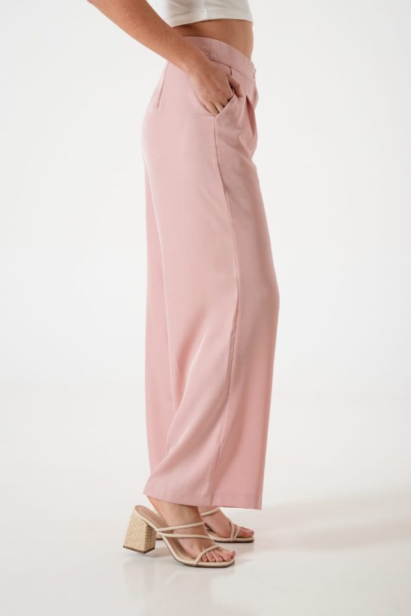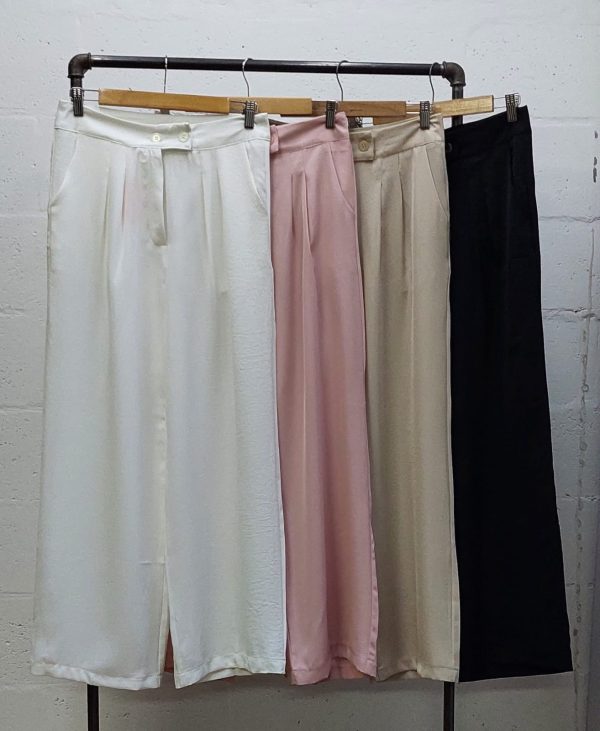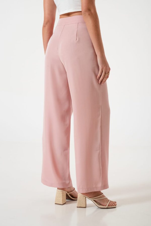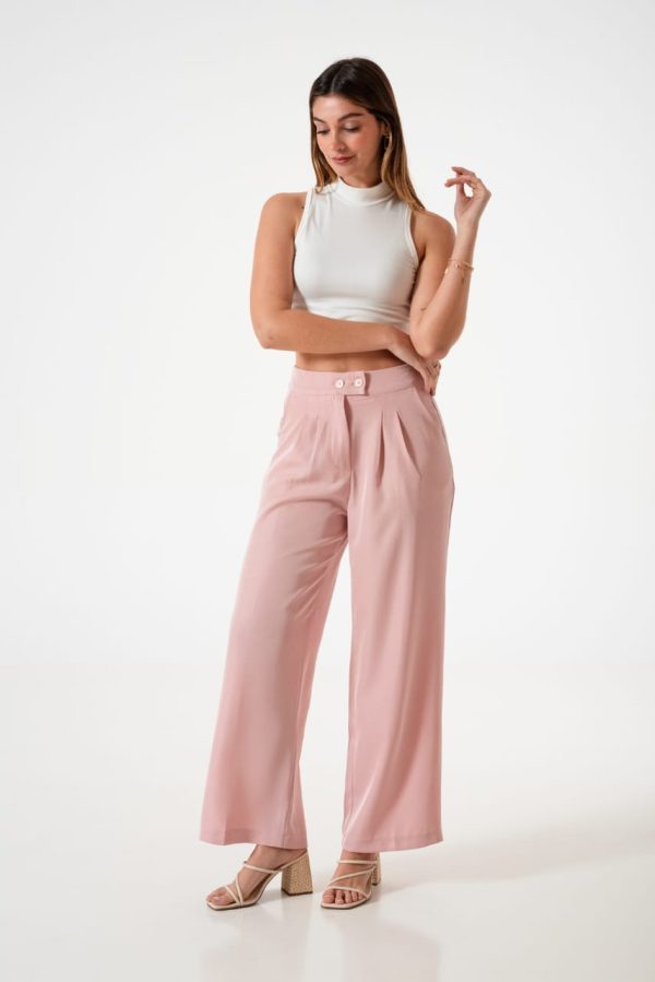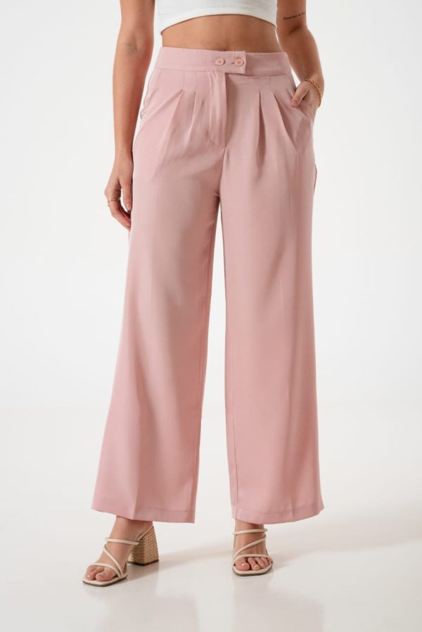 Pantalon estilo palazo confeccionado en tela de sastreria con detalle de doble boton, pinzas delanteras, bolsillos, pasacinto, cierre y boton.