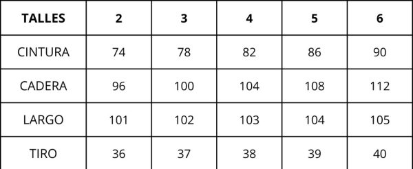 | Talles | 2, 3, 4, 5, 6 |