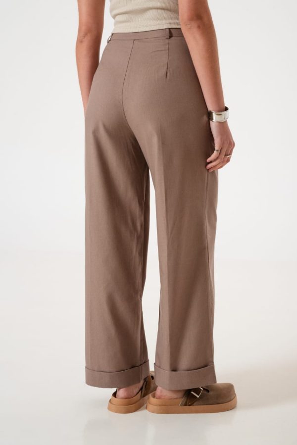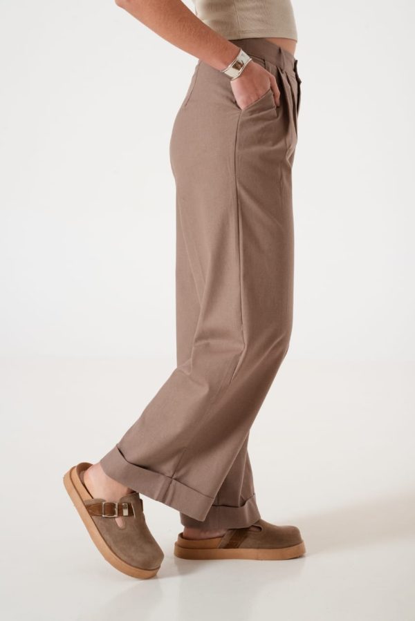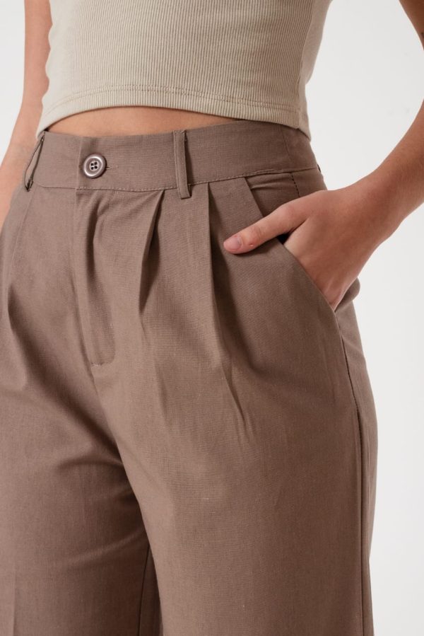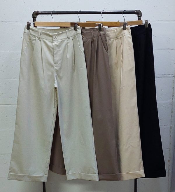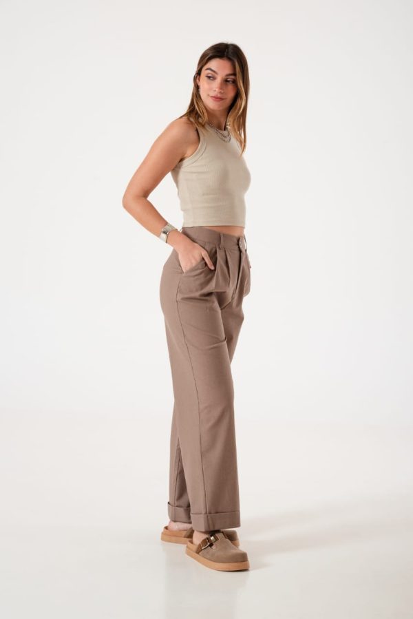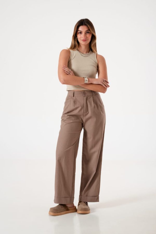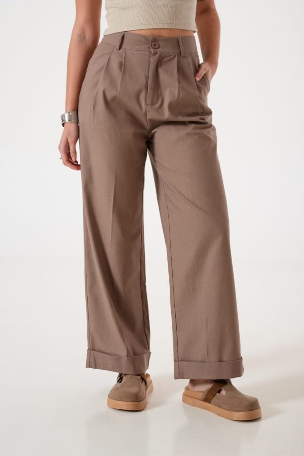 Pantalon estilo palazo confeccionado en tela de sastreria con detalle de doble pinzas delanteras, pasacintos, bolsillos, cierre y boton.