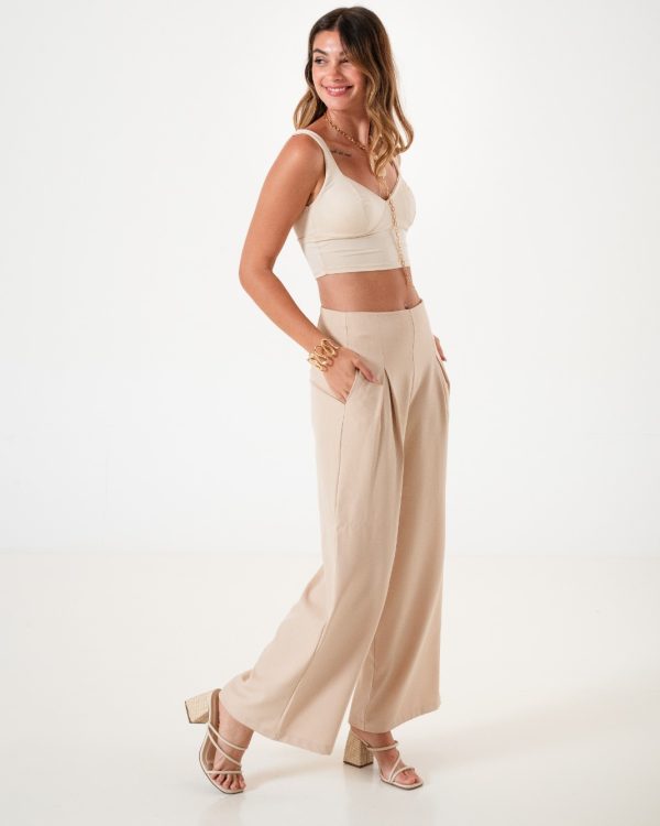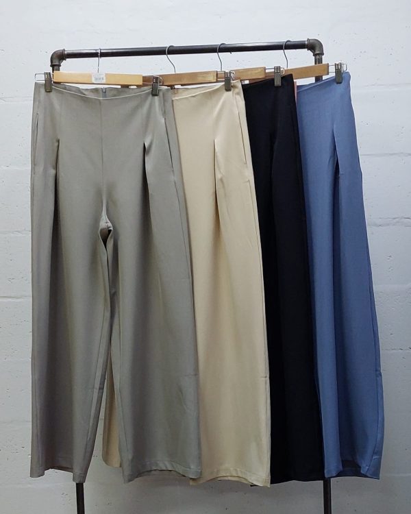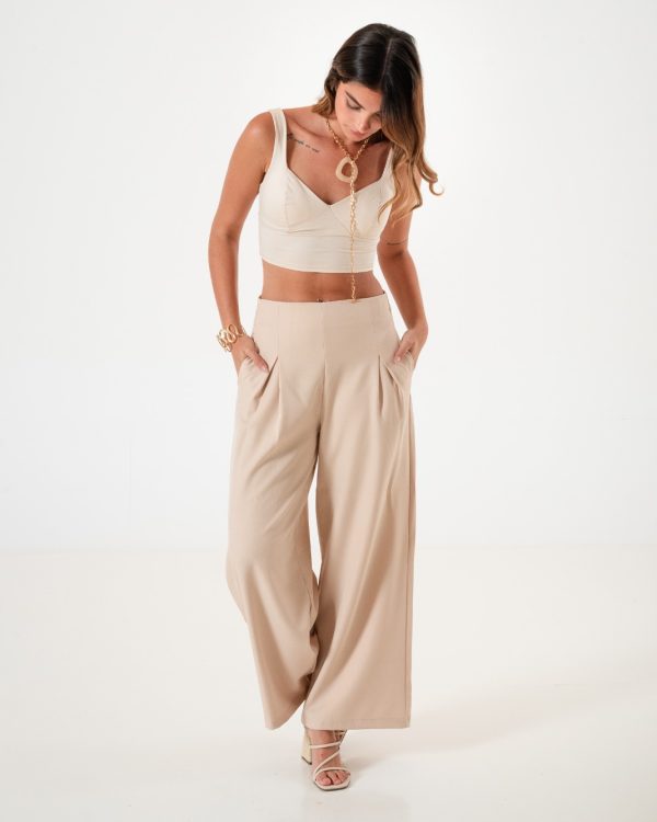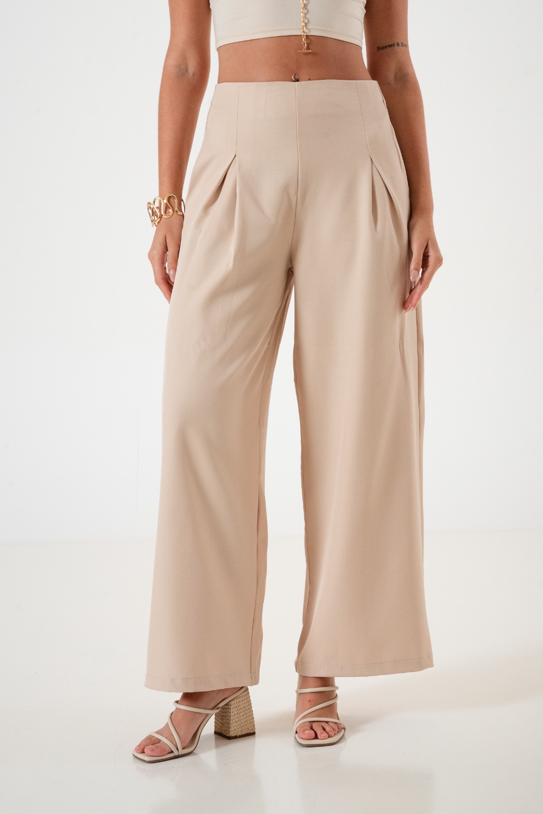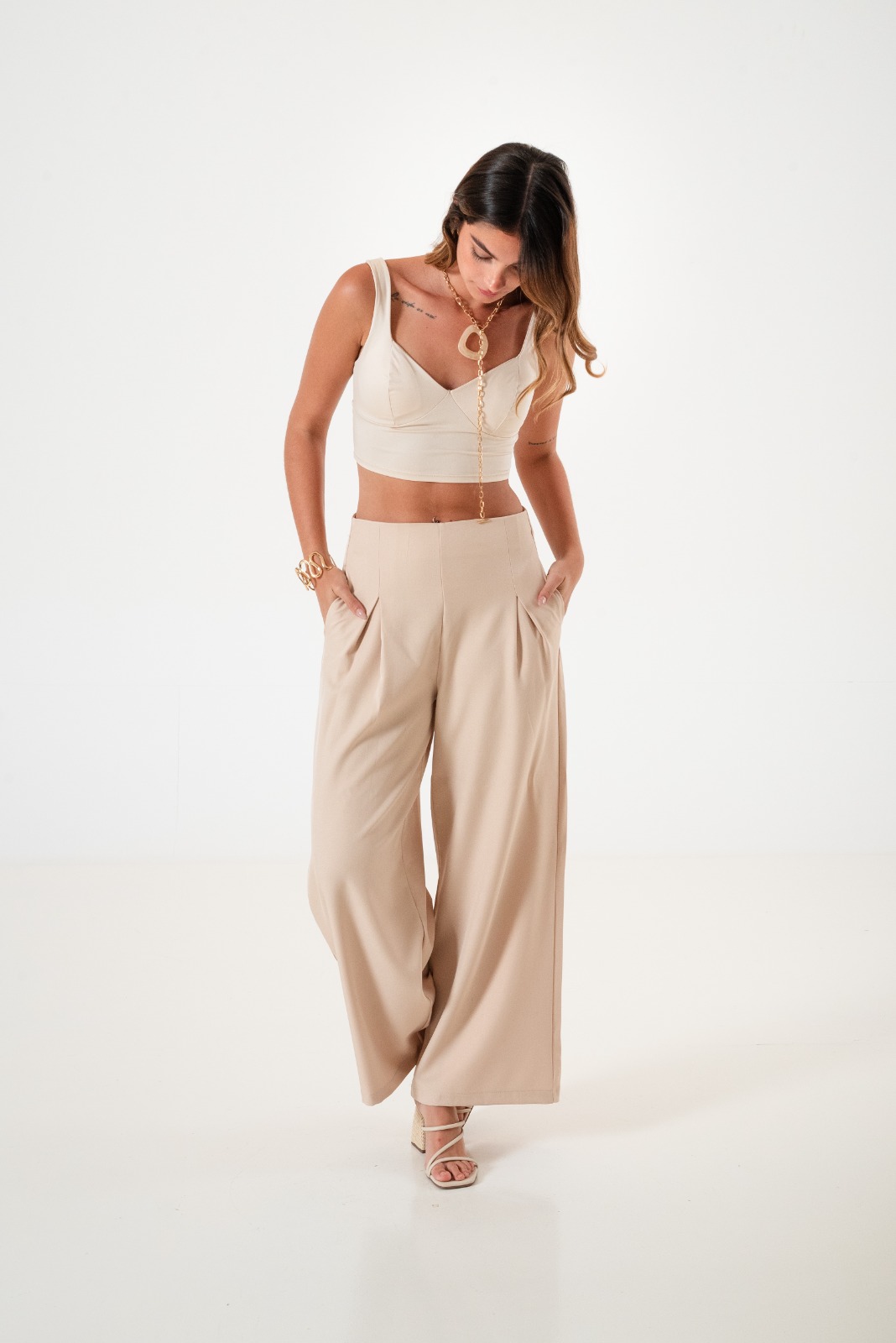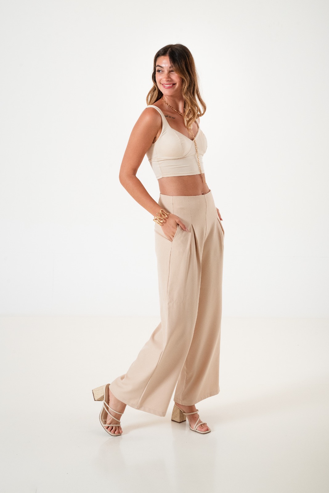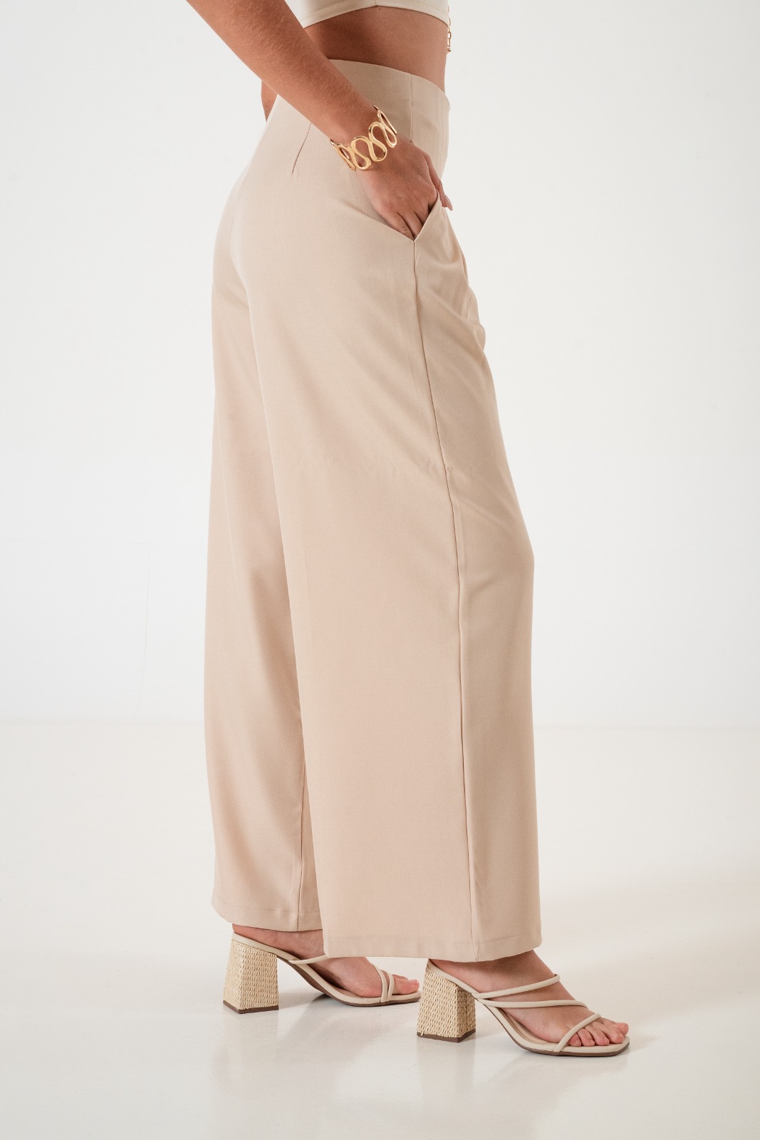 Pantalon estilo palazo confeccionado en tela de sastreria