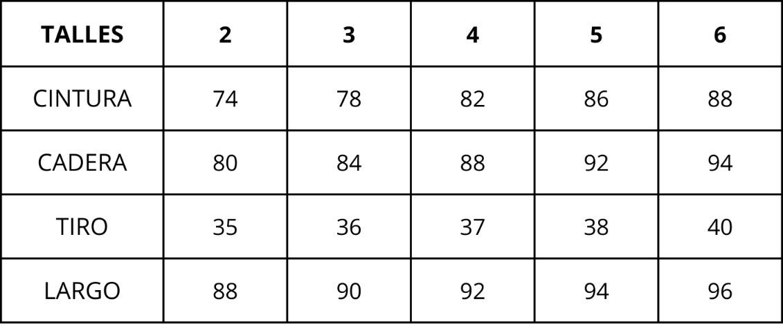 | Talles | 1, 2, 3, 4, 5, 6 |