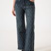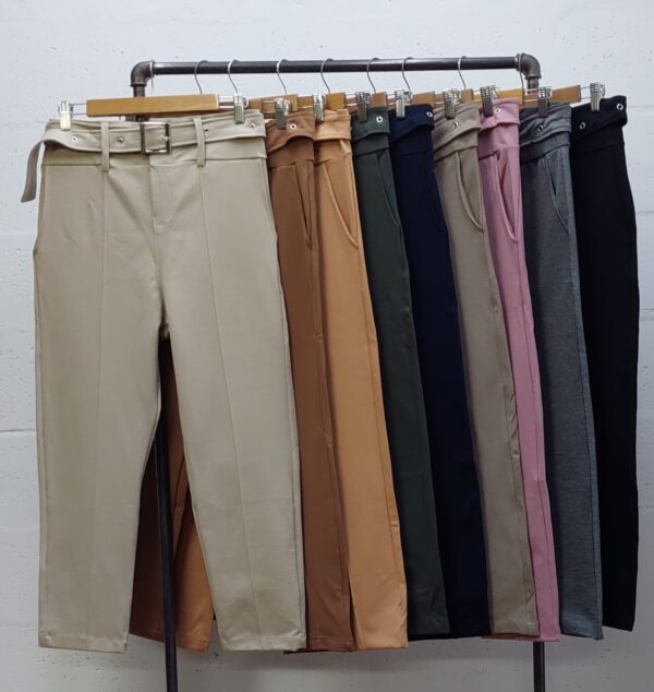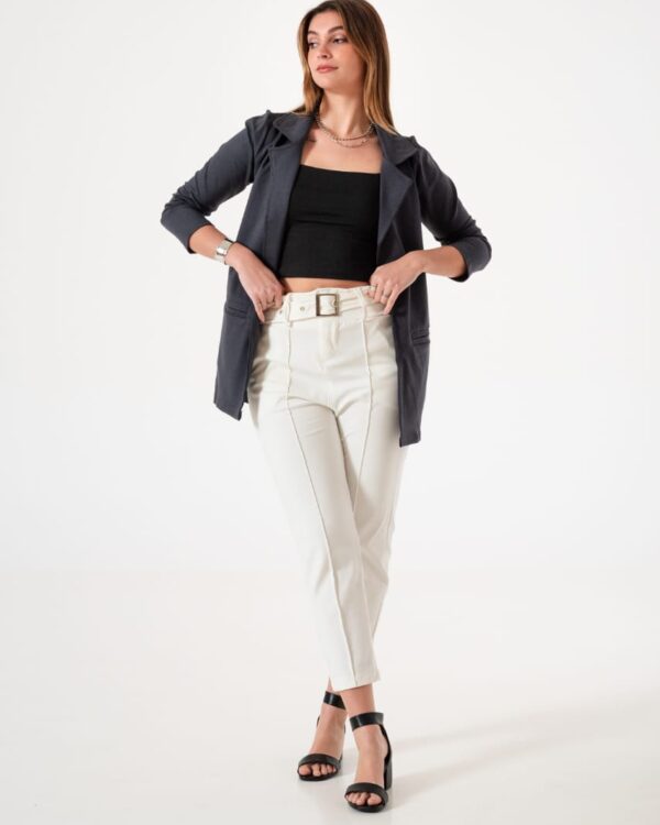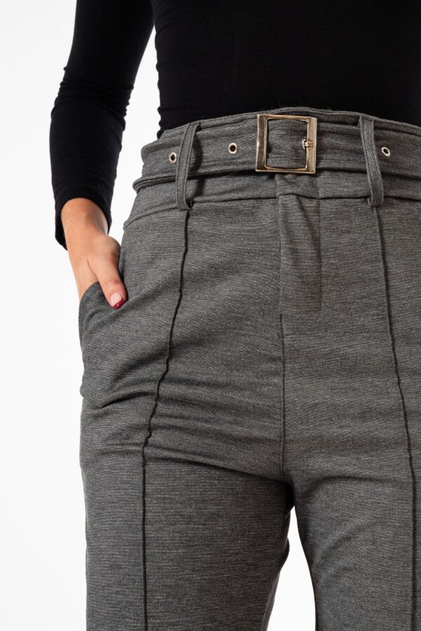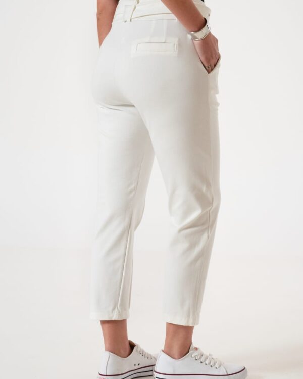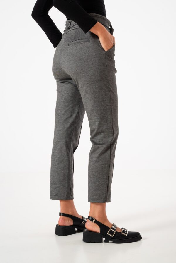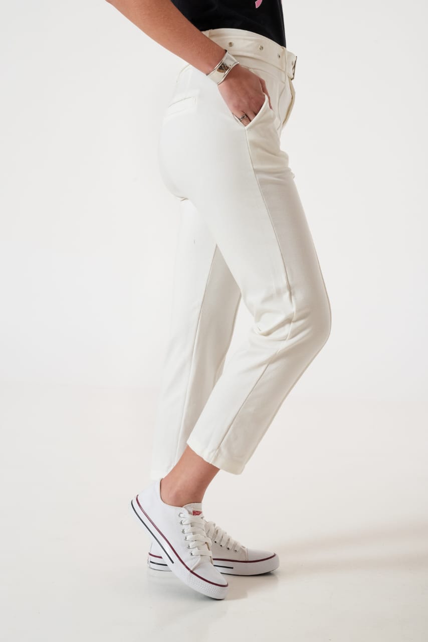 Pantalon estilo mom confeccionado en tela de punto roma con detalle de cinto, bolsillos, cierre y boton.