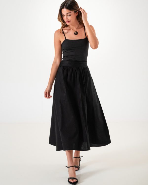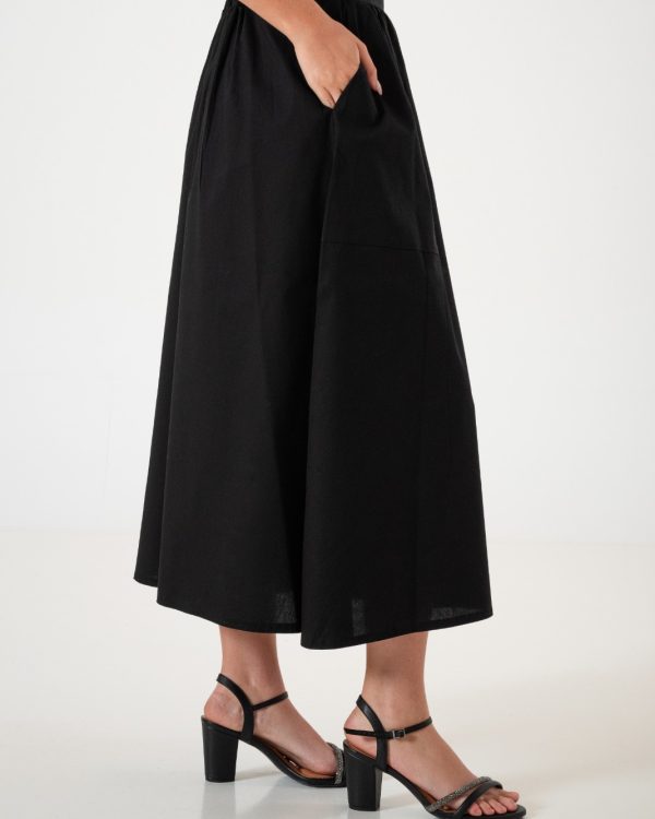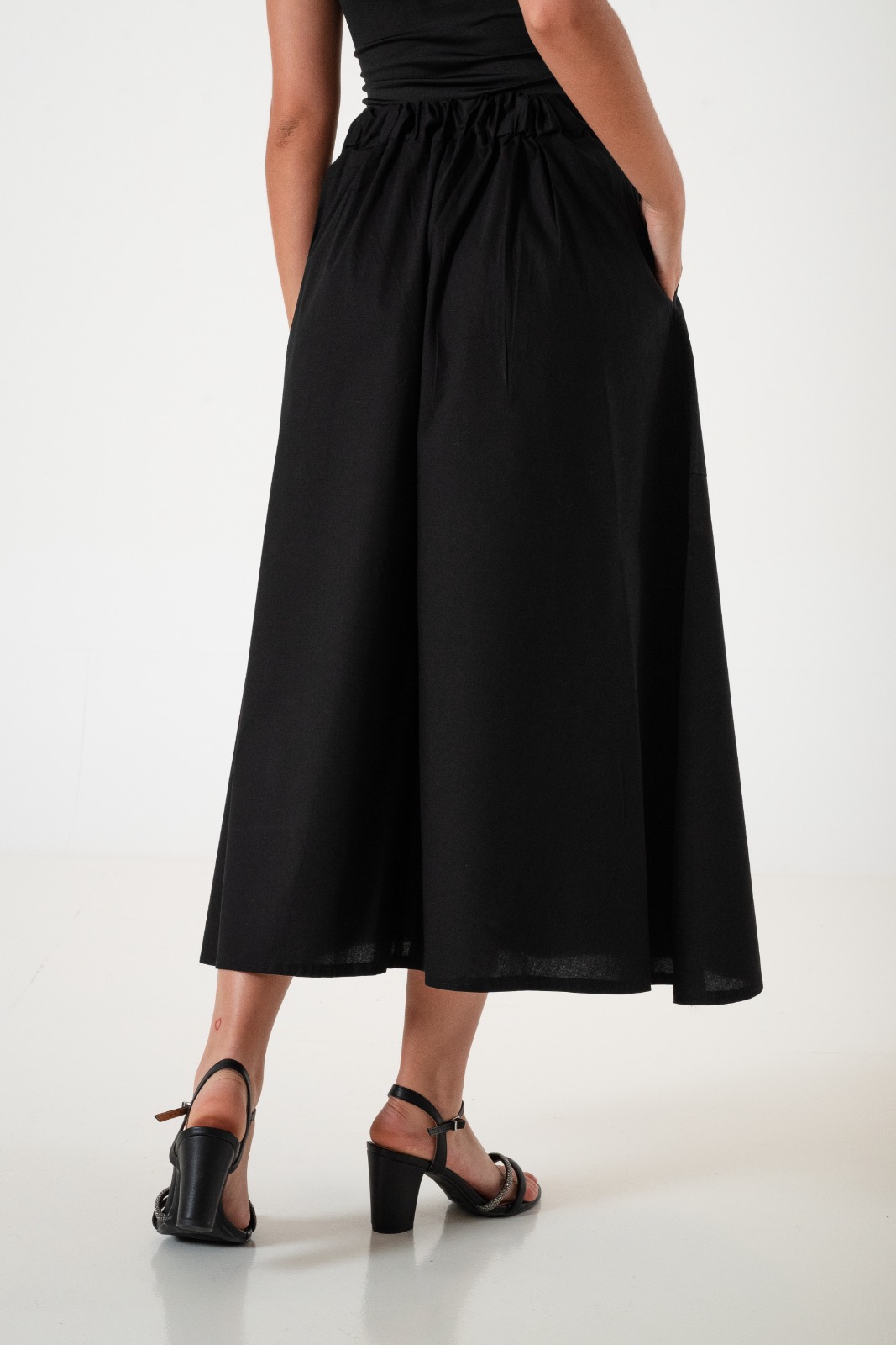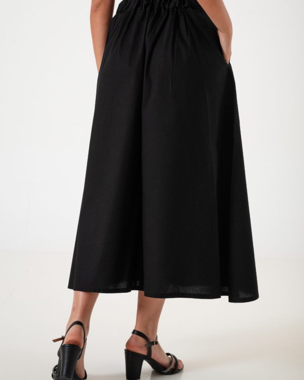 Pollera confeccionada en tela de poplin con detalle de cintura elastizada.