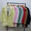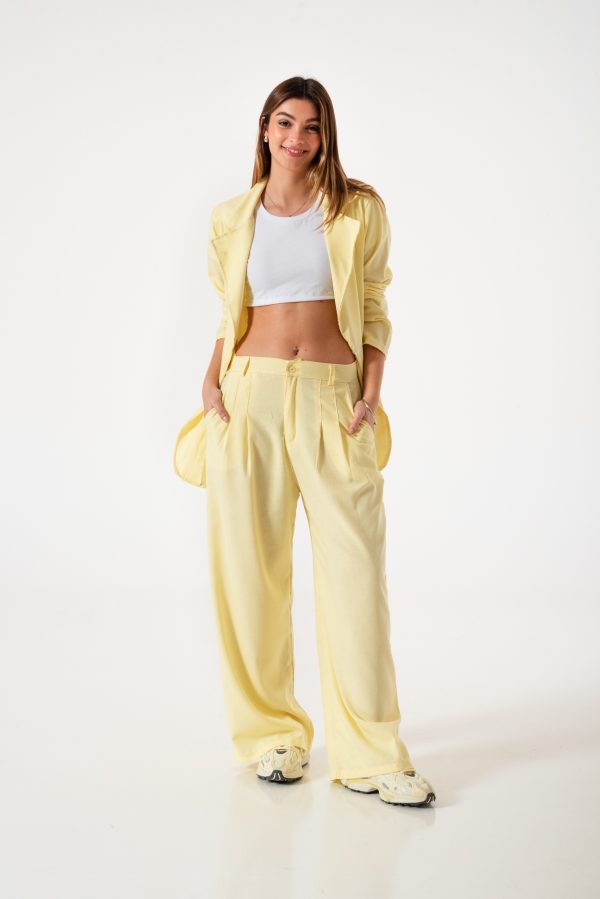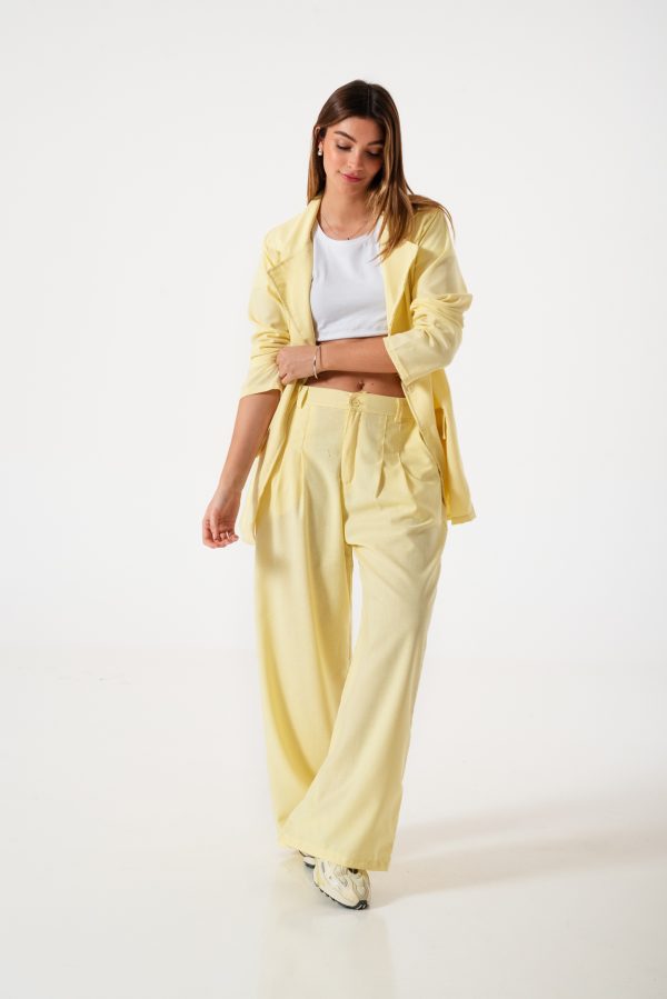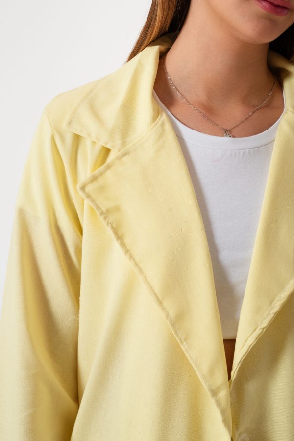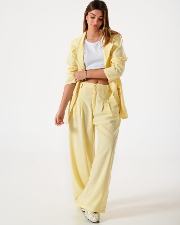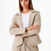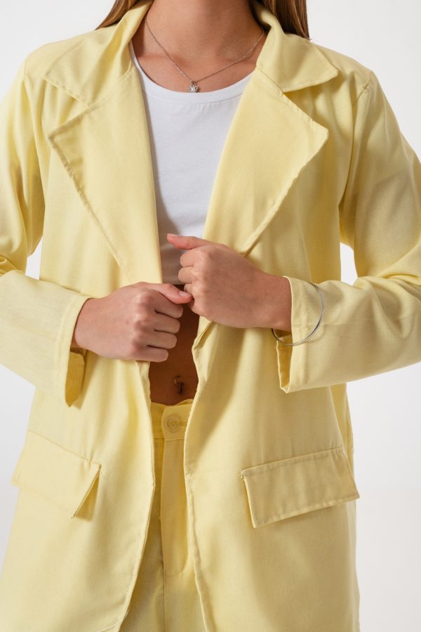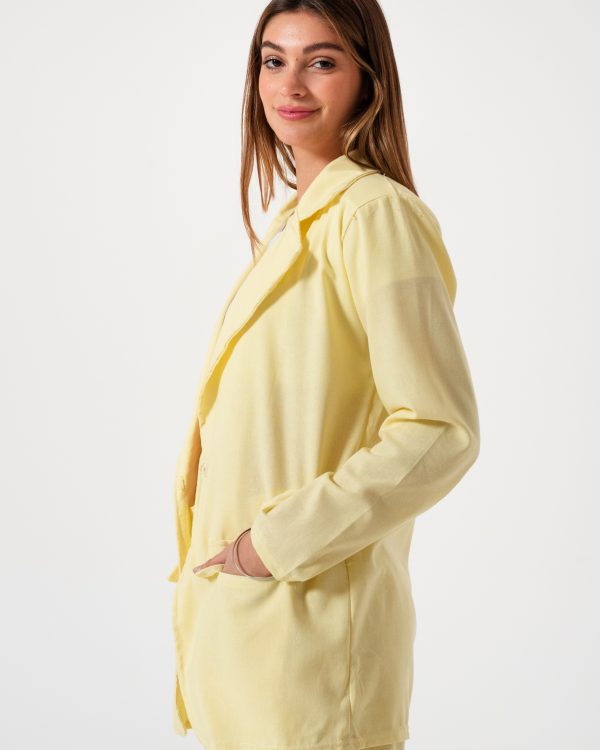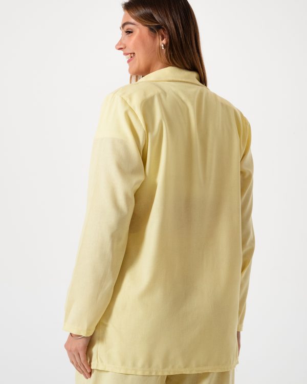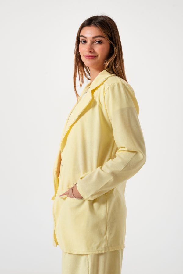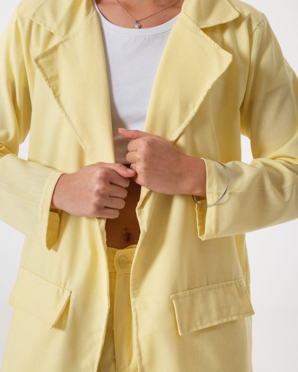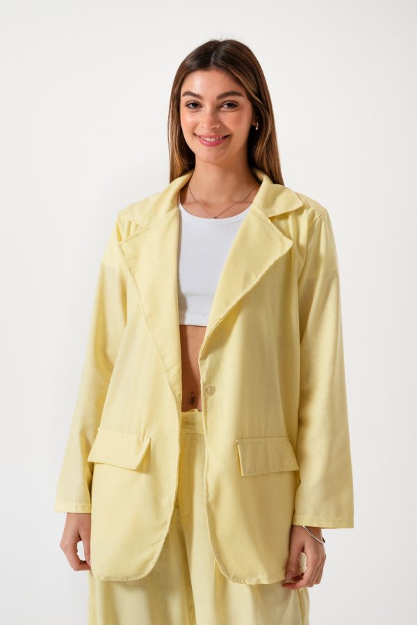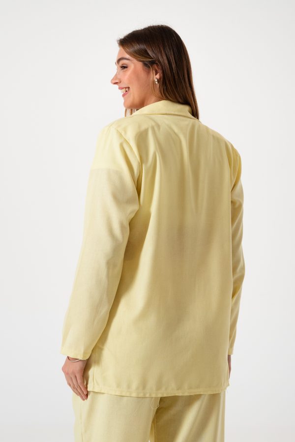 Saco confeccionado en tela de lino con detalle de bolsillos chino.
