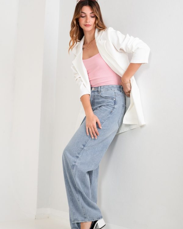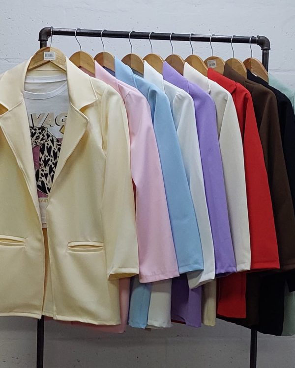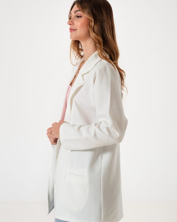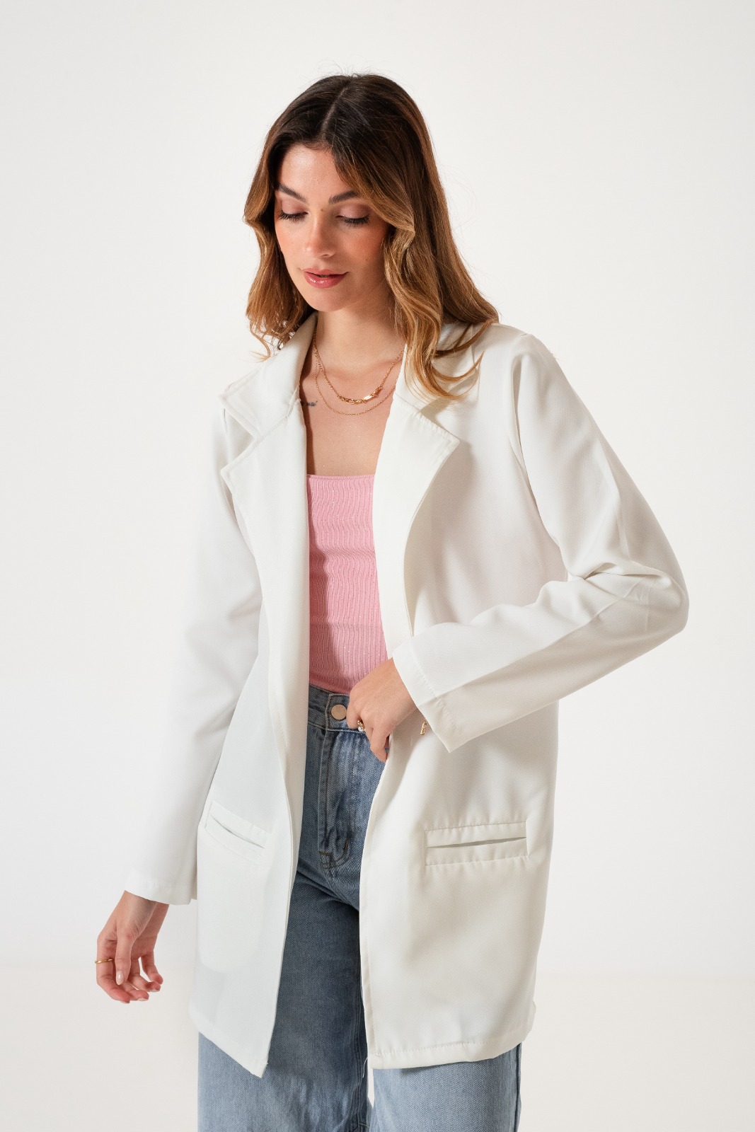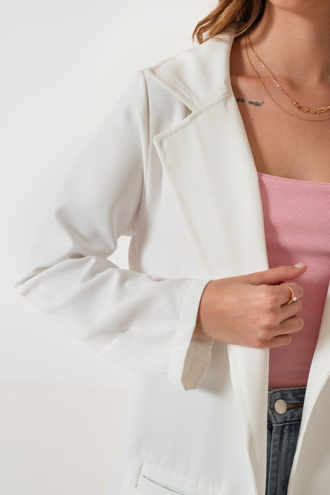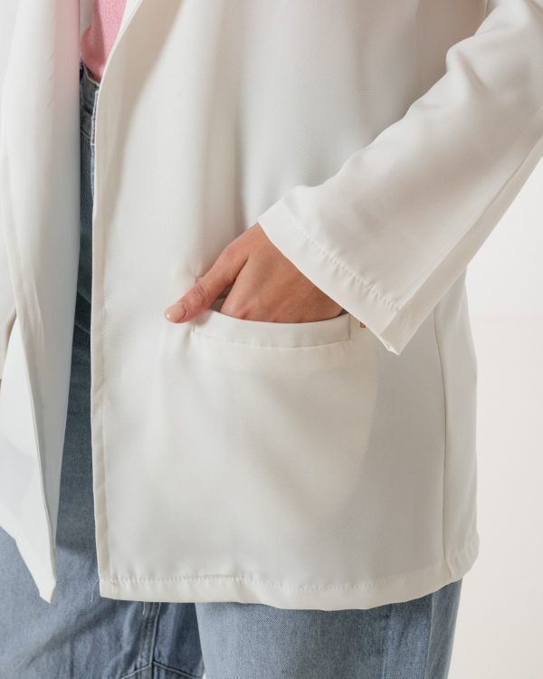Saco confeccionado en tela de sastrero con detalle de bolsillo chino.