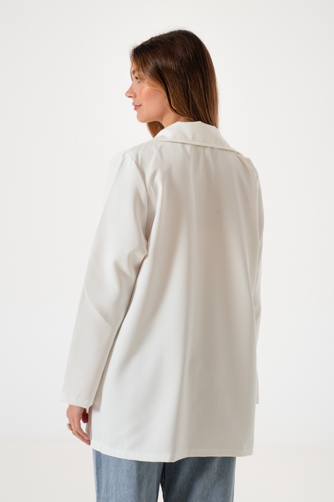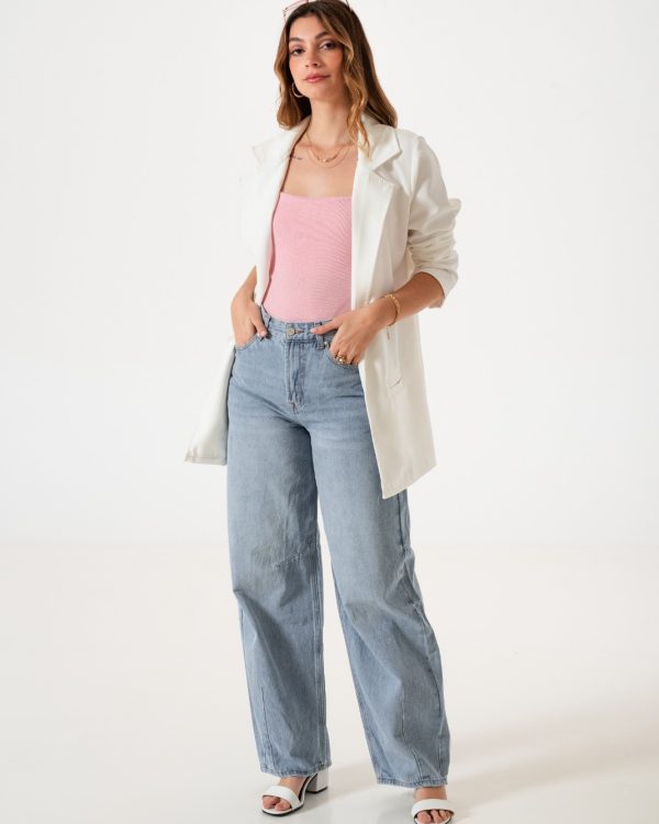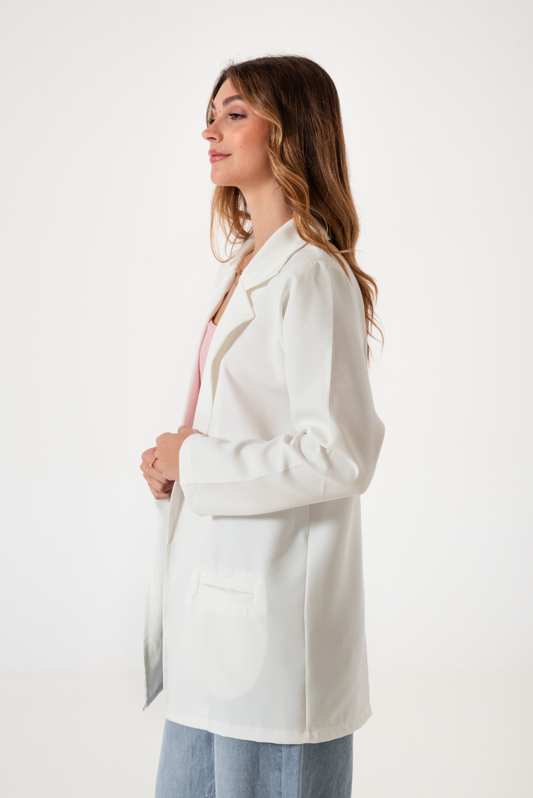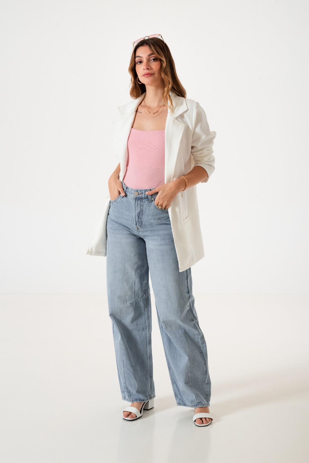 Saco confeccionado en tela de sastrero con detalle de bolsillo chino.