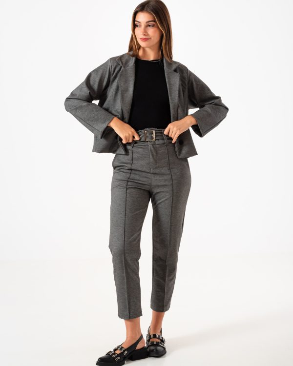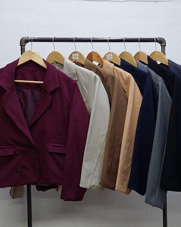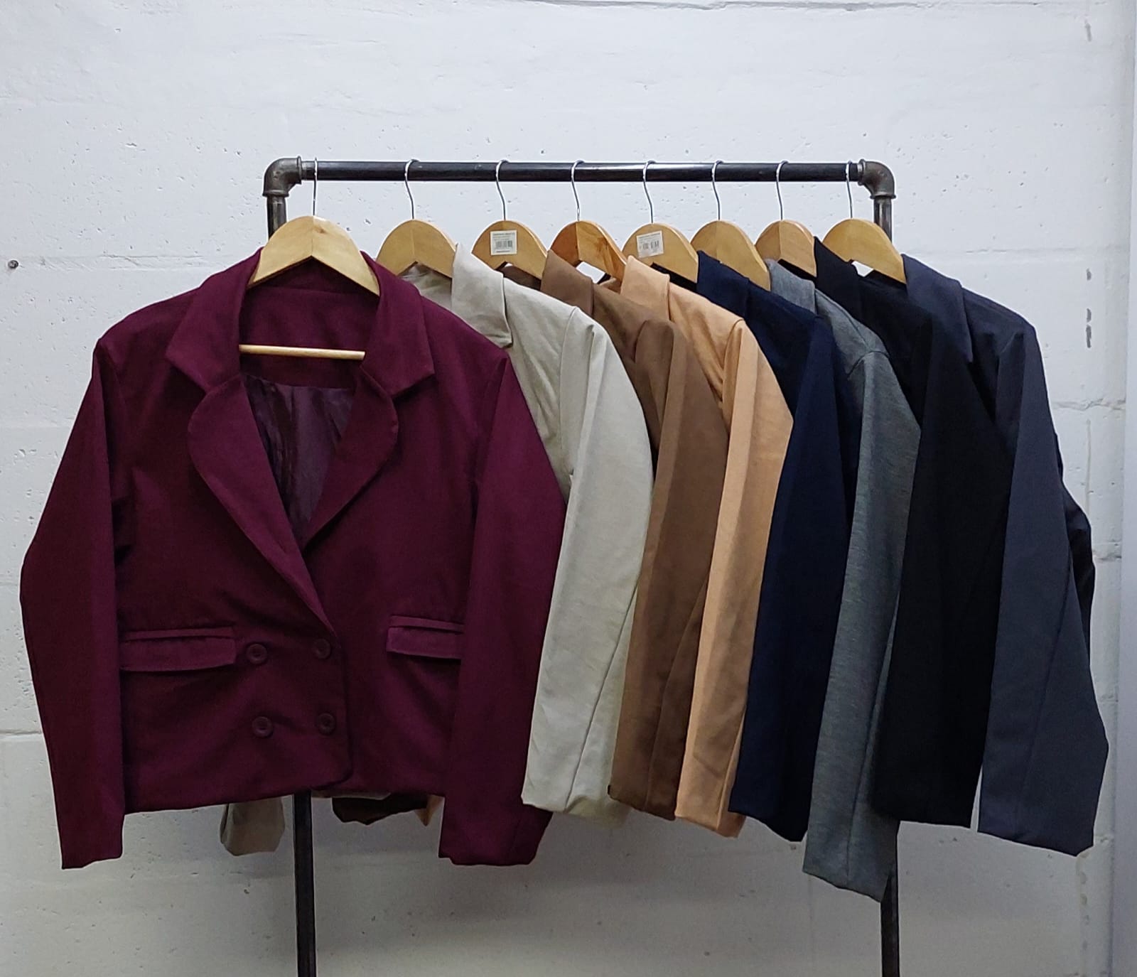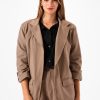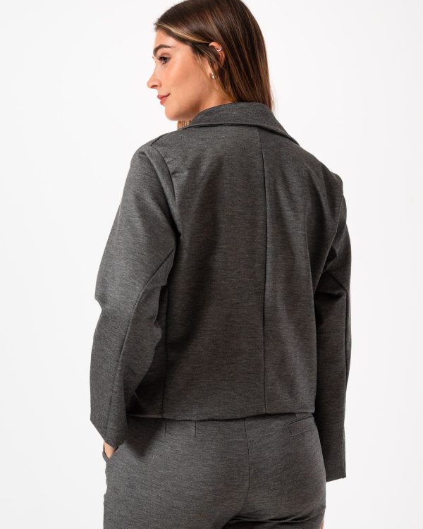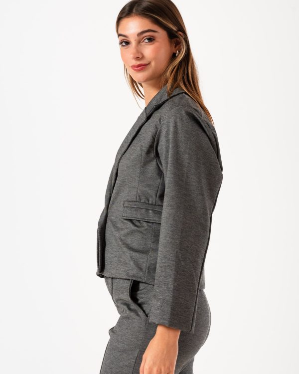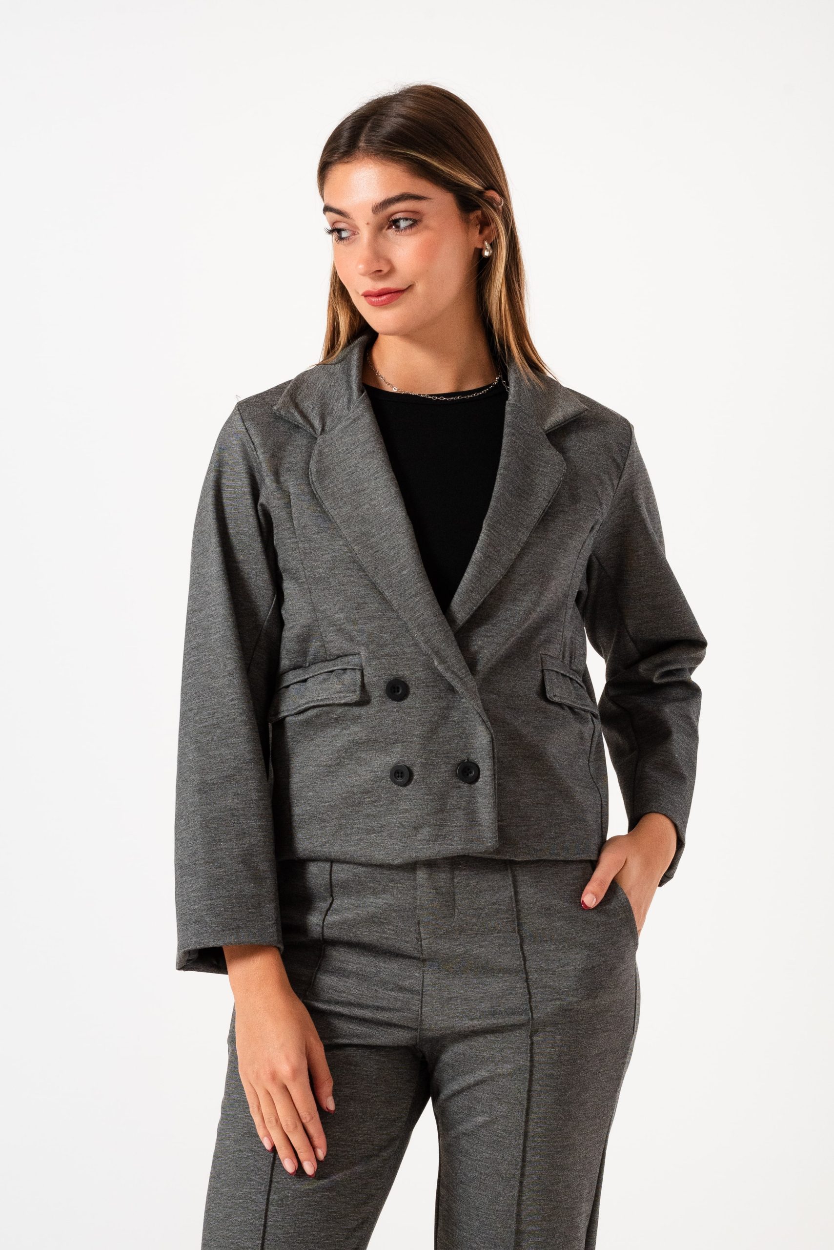 Saco confeccionado en tela de punto roma con detalle de cuello solapa y bolsillos chino.