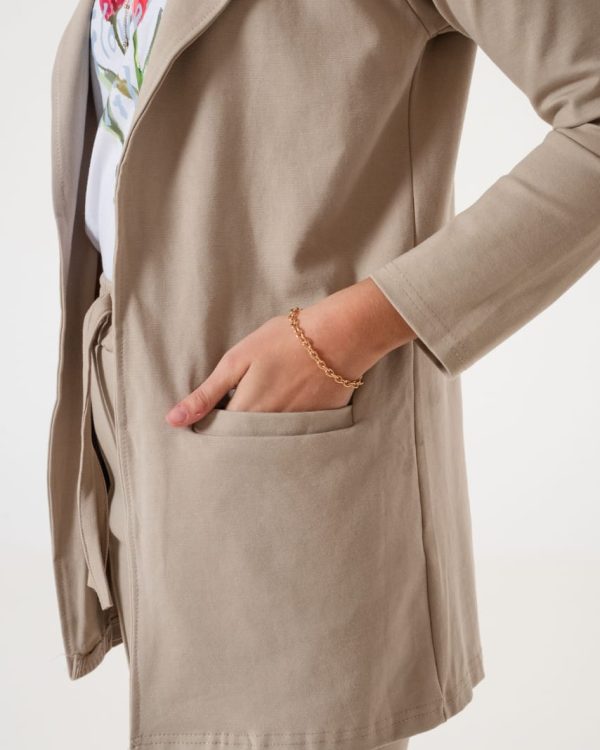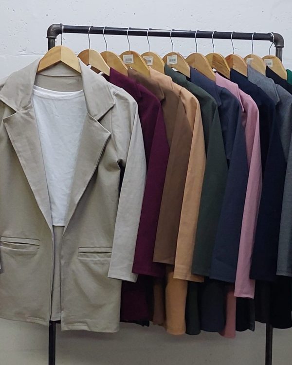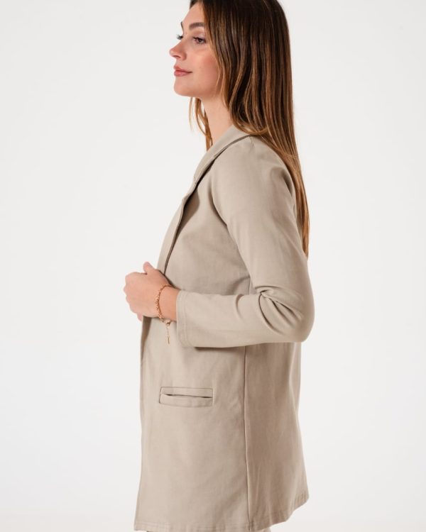 Saco confeccionado en tela de punto roma con detalle de bolsillos chino.