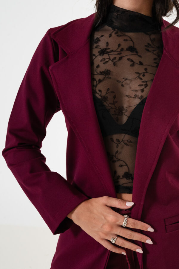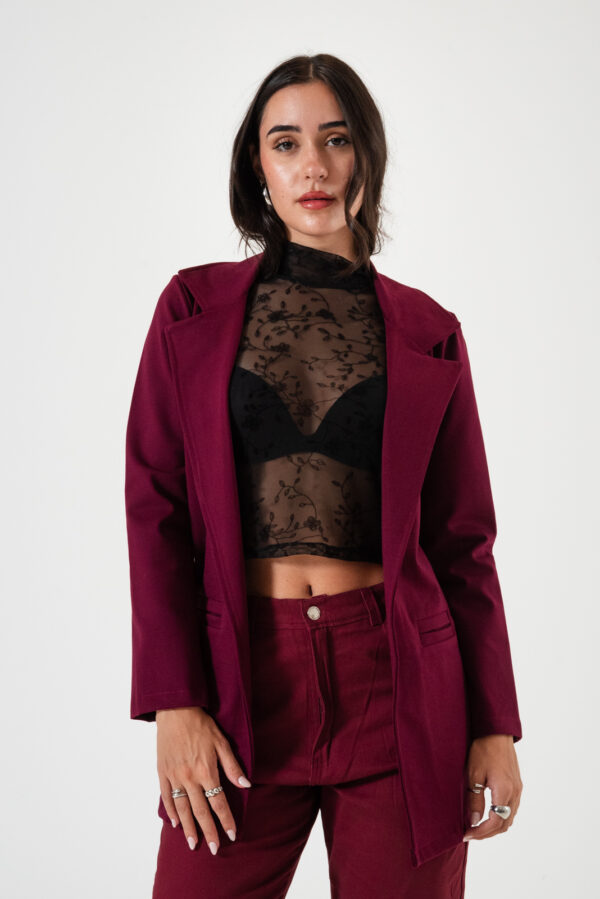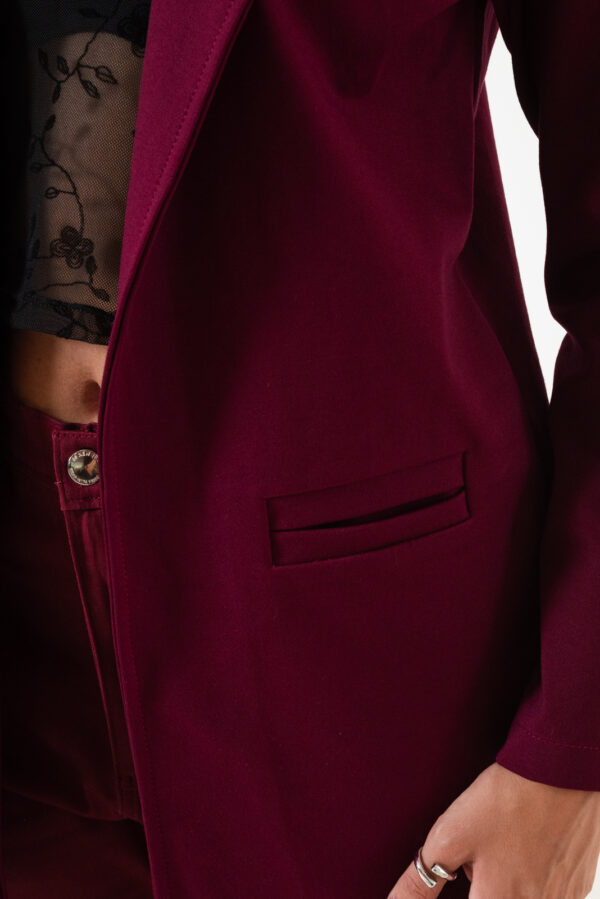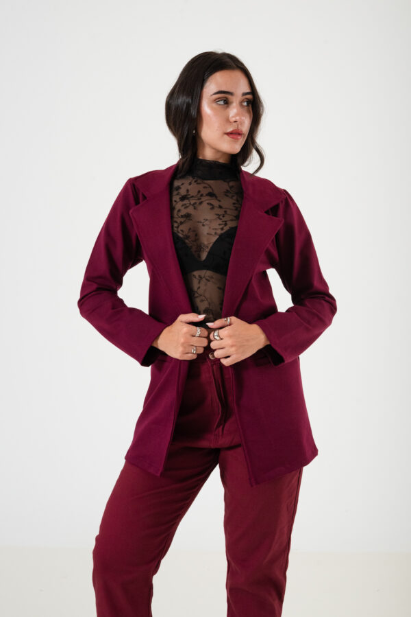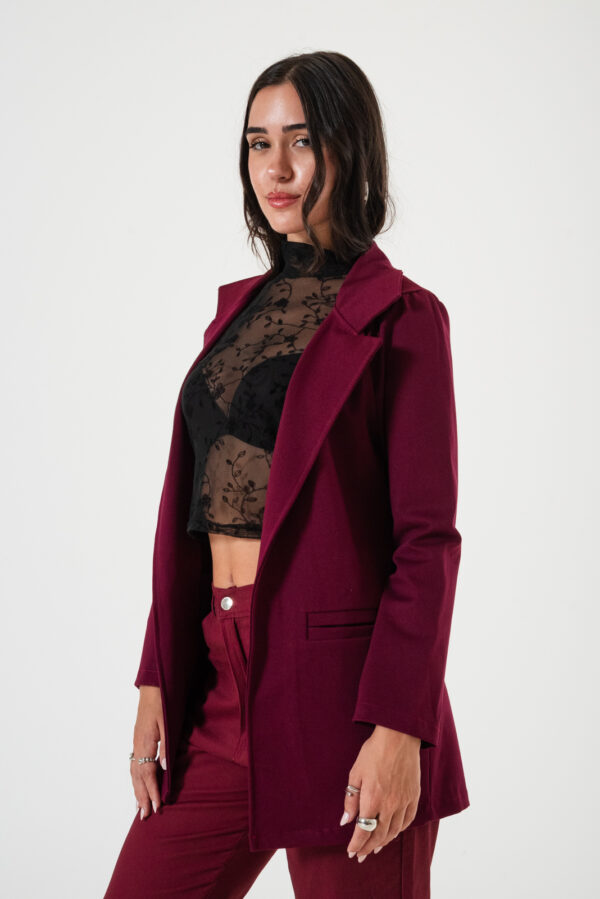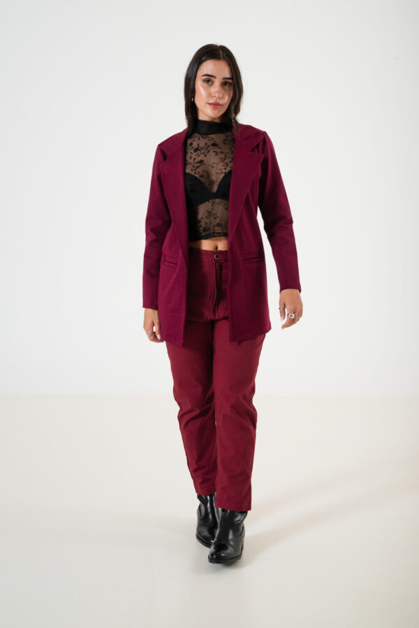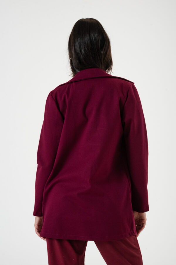 Saco confeccionado en tela de punto roma con detalle de bolsillos chino.