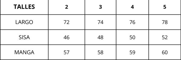 | Talles | 2, 3, 4, 5, 6 |