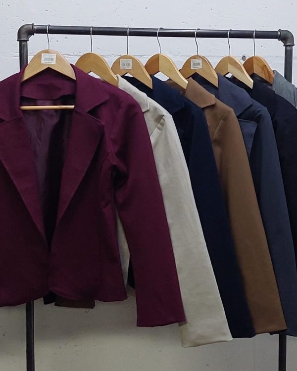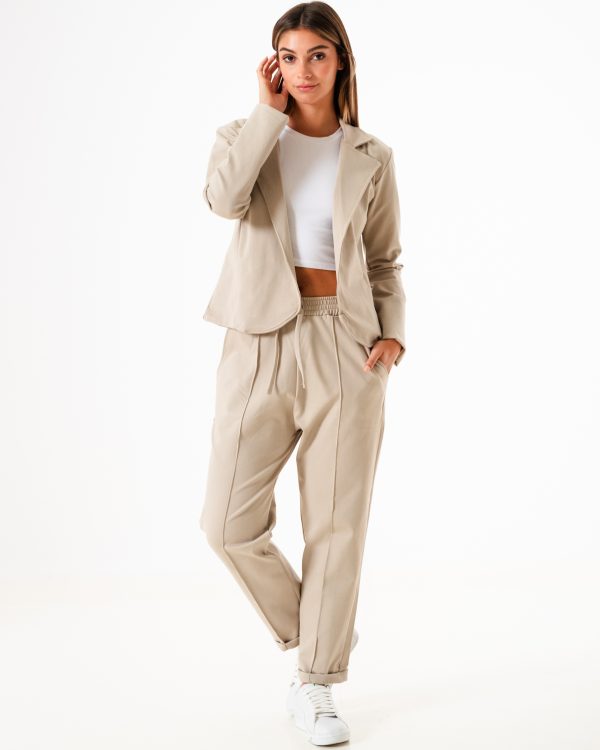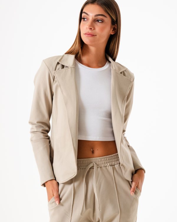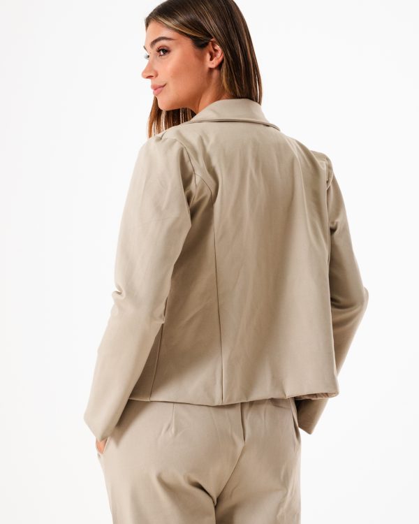 Saco confeccionado en tela de punto roma con detalle de cuello solapa