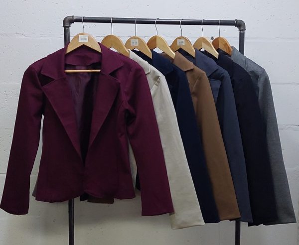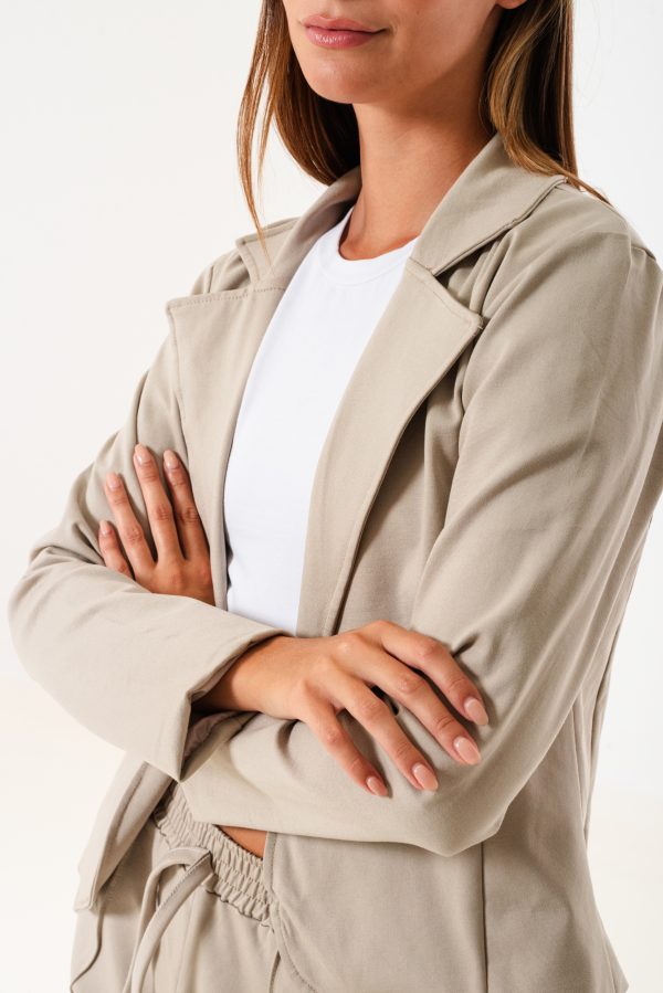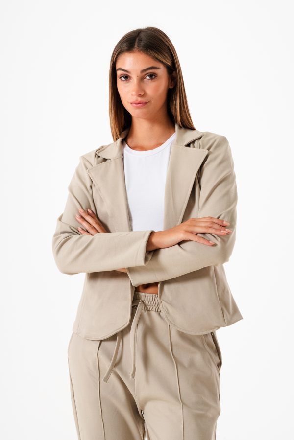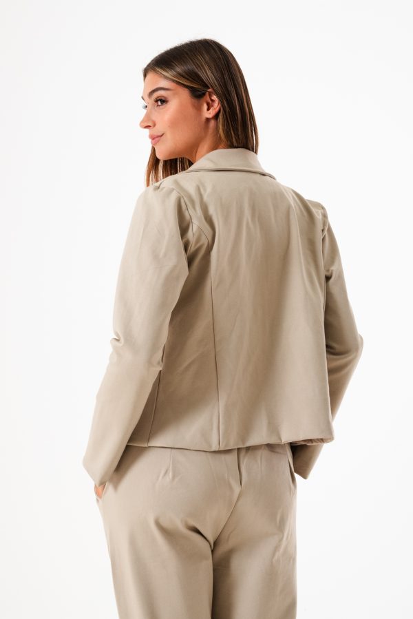 Saco confeccionado en tela de punto roma con detalle de cuello solapa