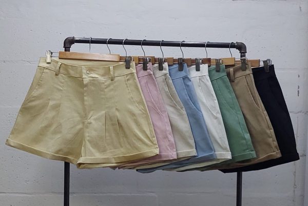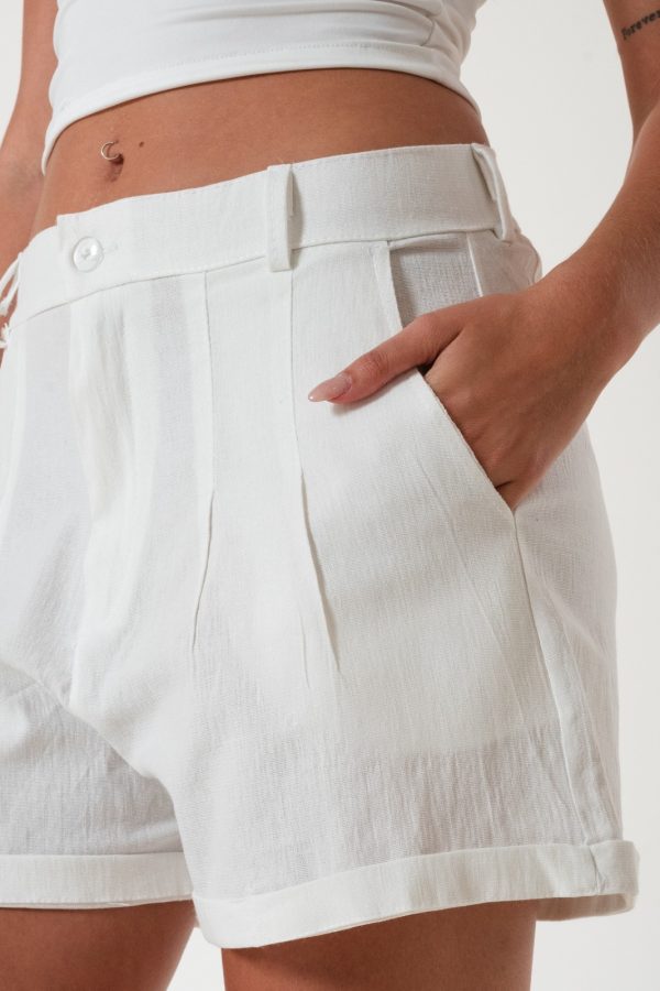 Short confeccionado en tela de lino con detalle de doble pinzas delanteras, bolsillos, pasacinto, cierre y boton.