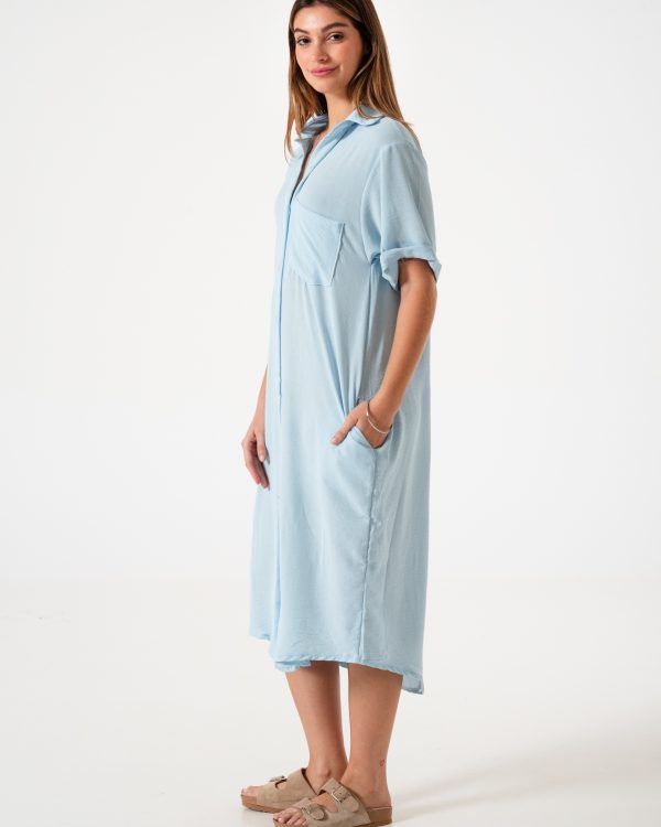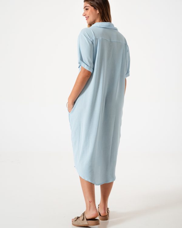 Vestido confeccionado en tela de lino con detalle de bolsillo delantero.