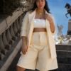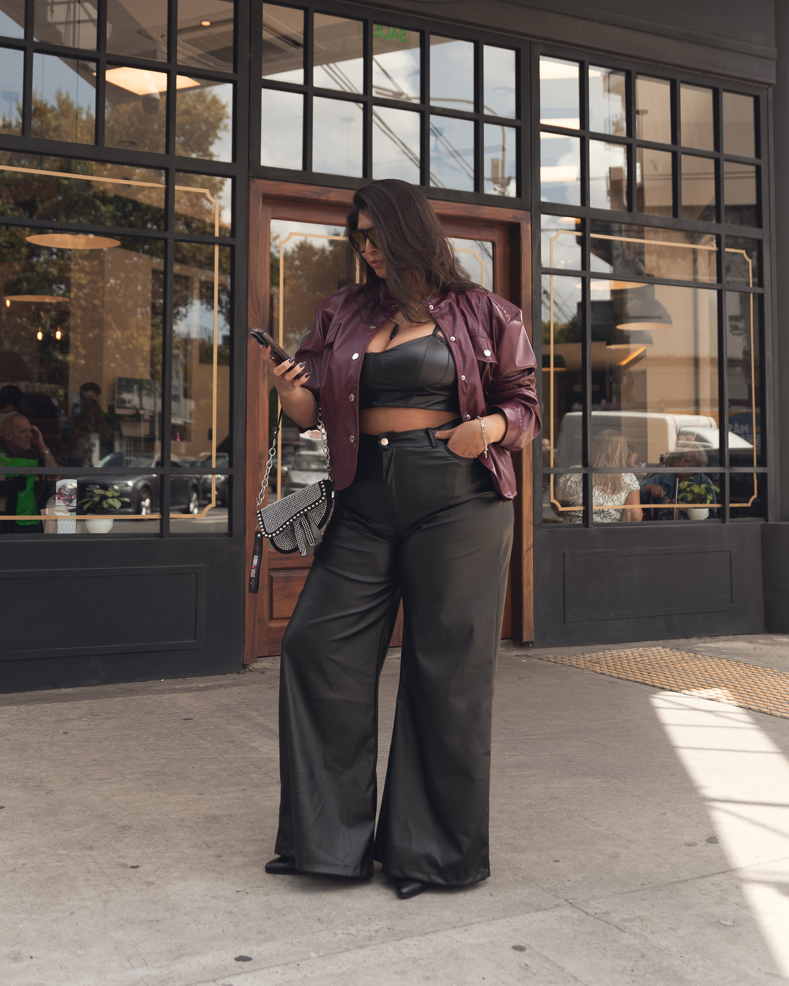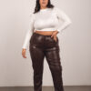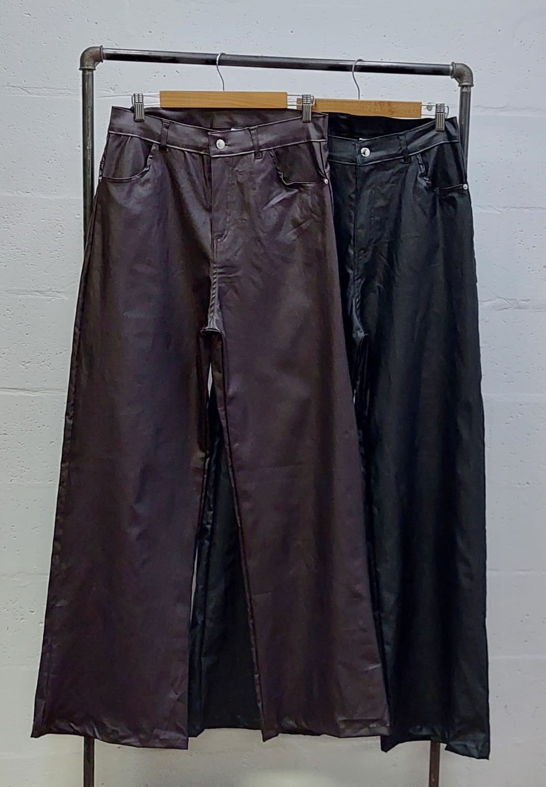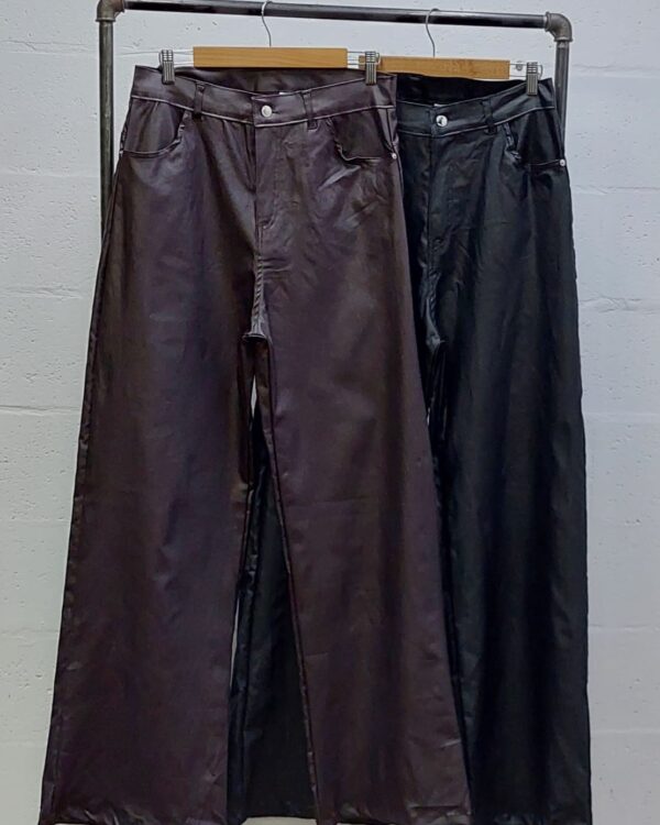 Pantalon estilo wid leg confeccionado en tela de bengalina engomado con detalle de bolsillos, pasacinto, cierre y boton.