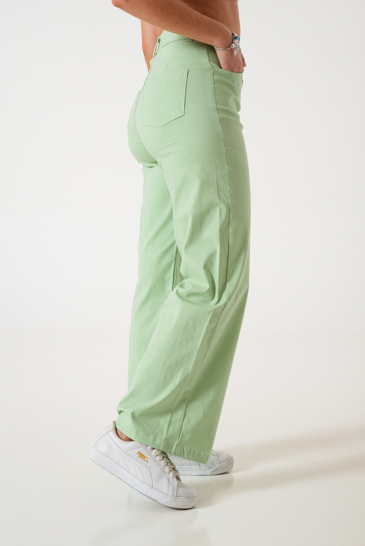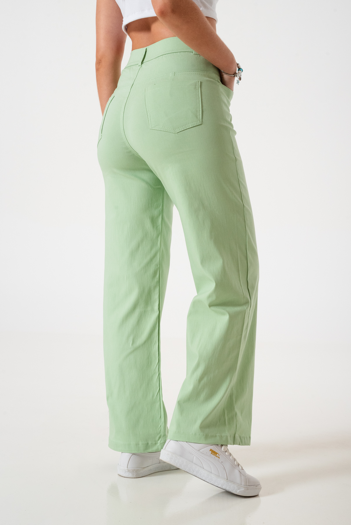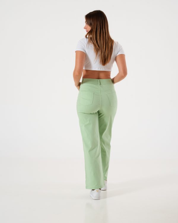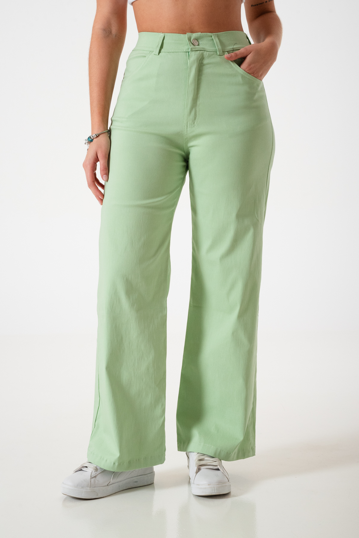 Pantalon estilo wid leg erika confeccionado en tela de bengalina con detalle de pasacinto, bolsillos, cierre y boton.
