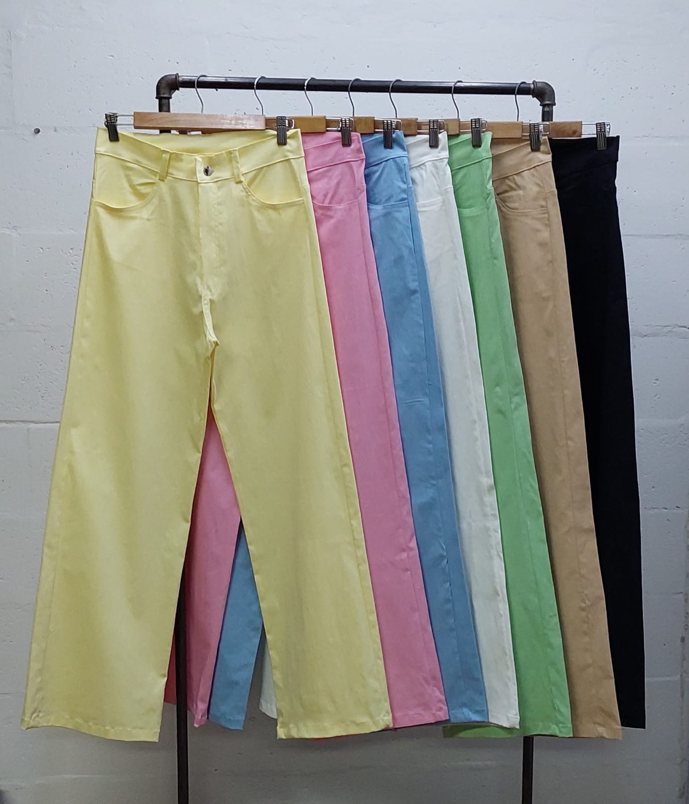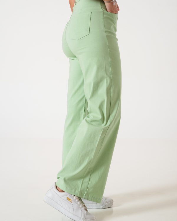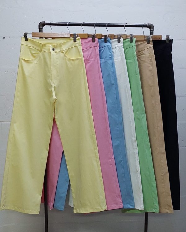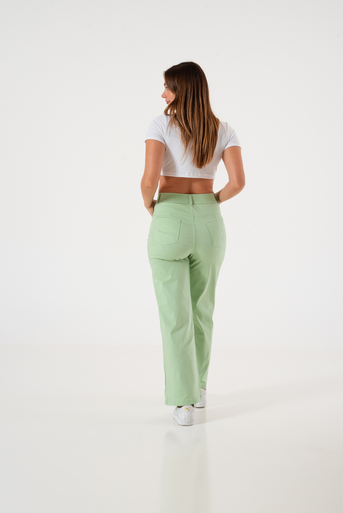 Pantalon estilo wid leg erika confeccionado en tela de bengalina con detalle de pasacinto, bolsillos, cierre y boton.